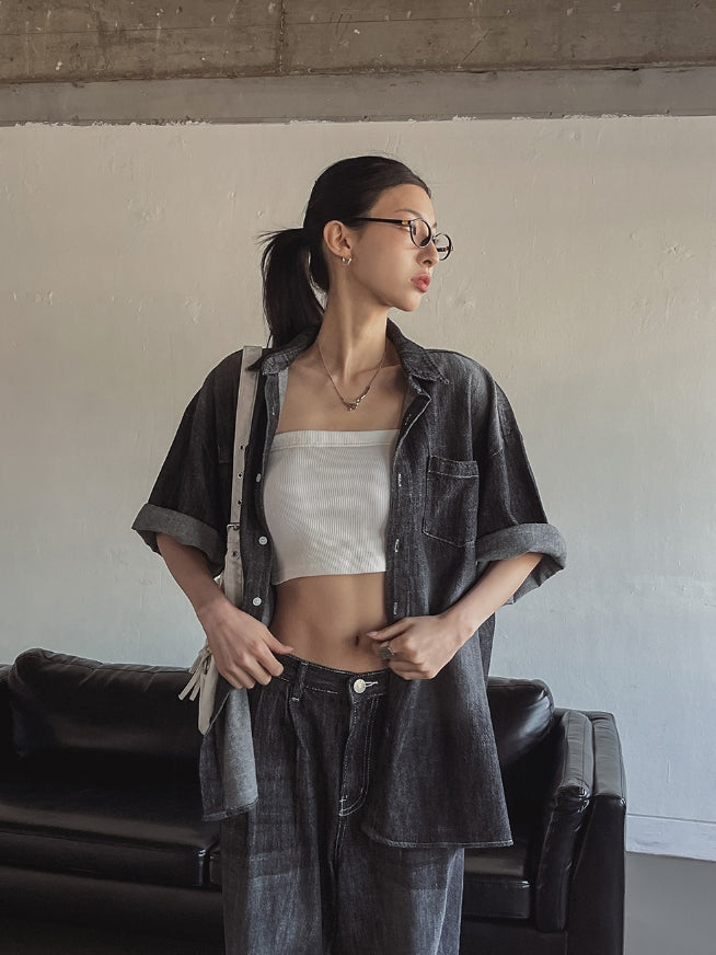 [U-BASIC] Basic ribbed tank top (+cap built-in)