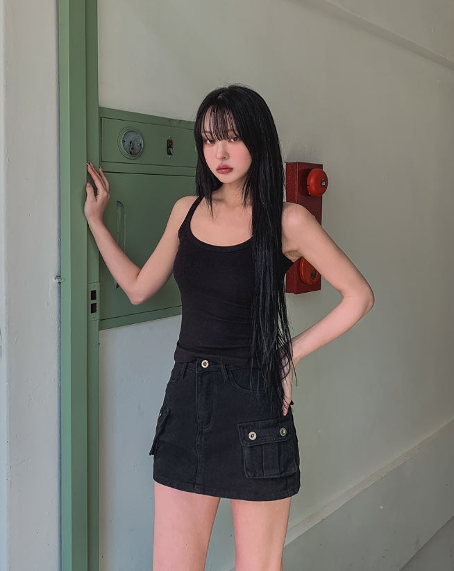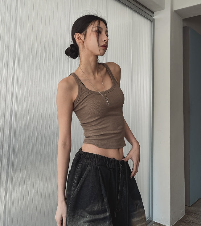 [U-BASIC] Boldy Line Ribbed Crop Sleeveless