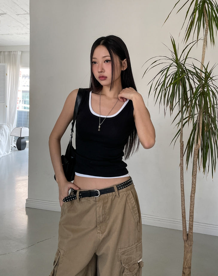[U-BASIC]デイリーソリッドクロップタンクトップ