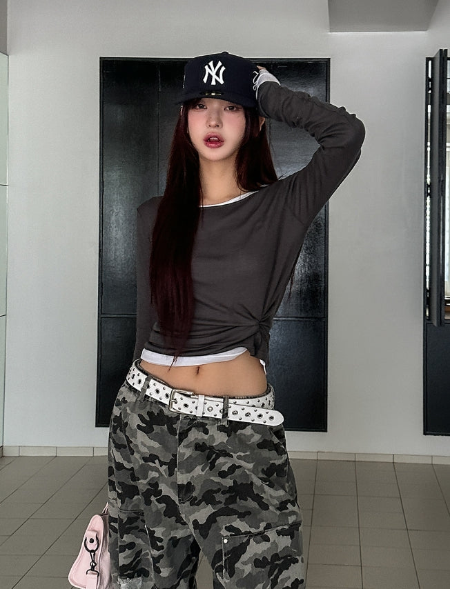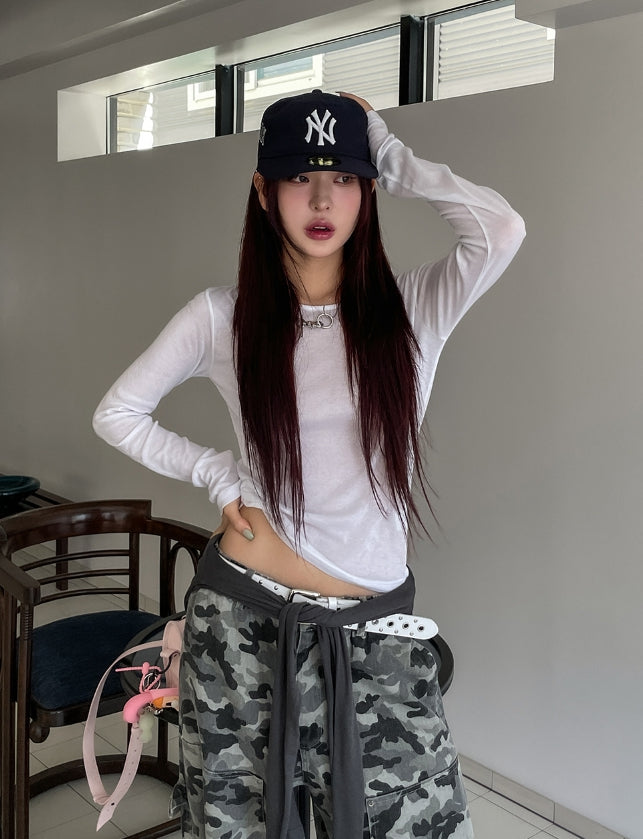 [U-BASIC]ディアシースルーレイヤードテンセル長袖Tシャツ