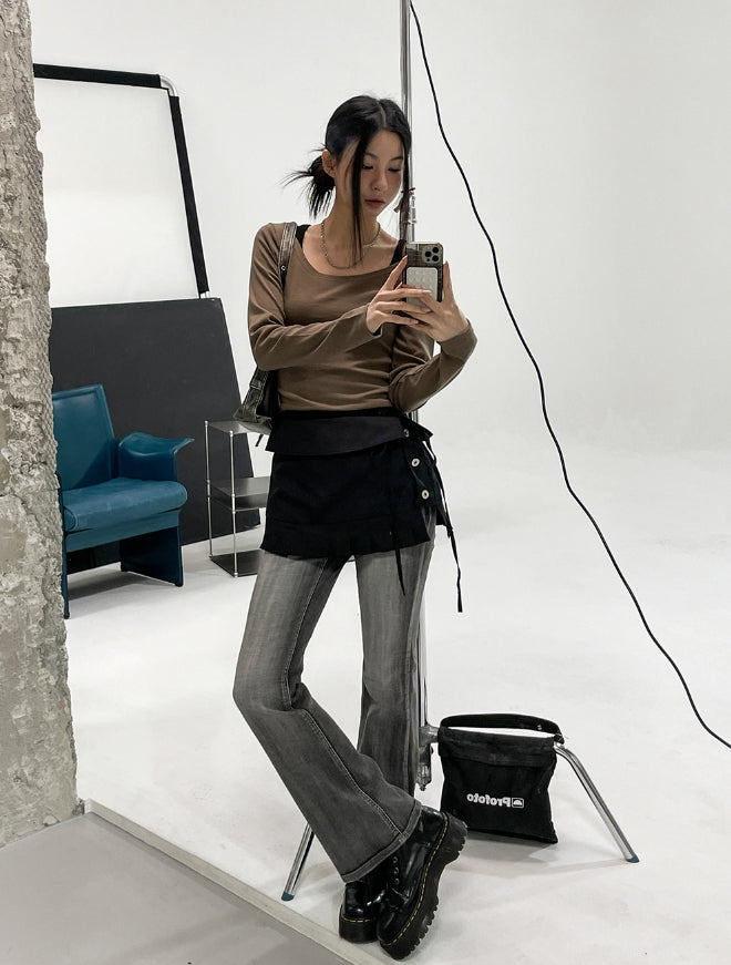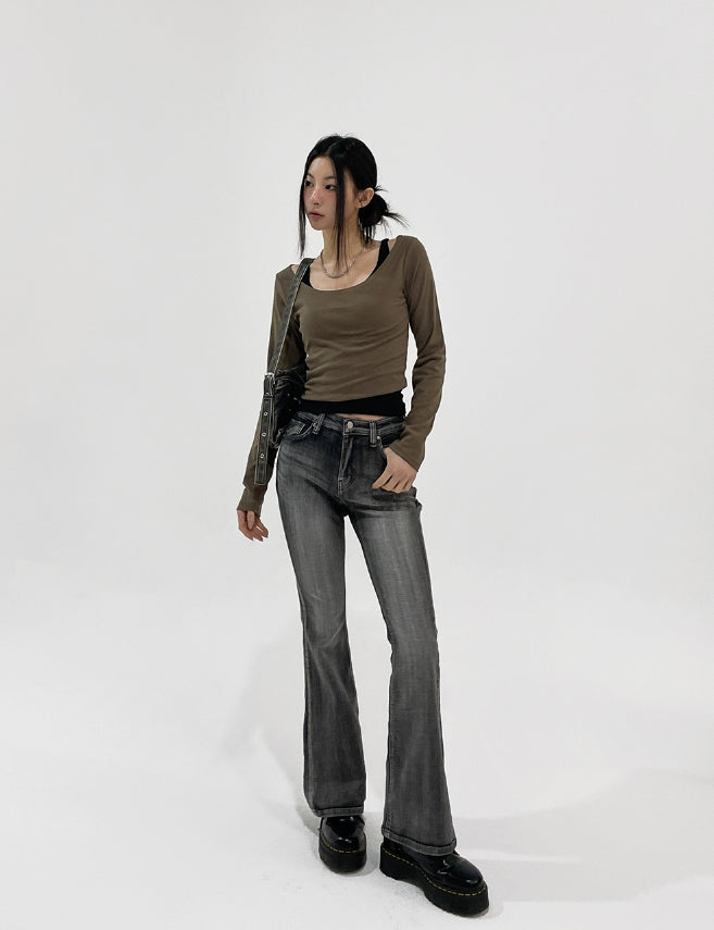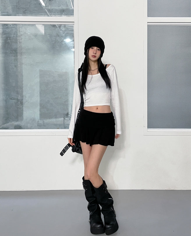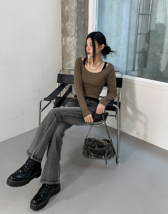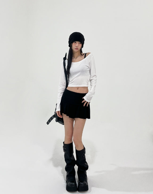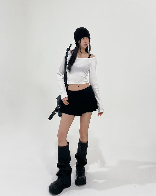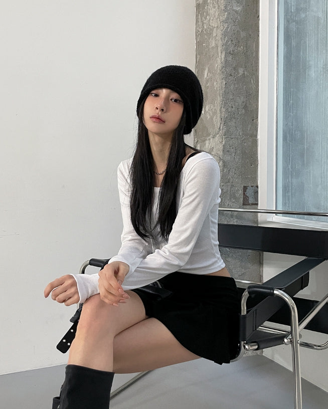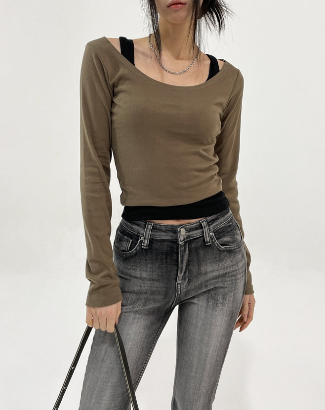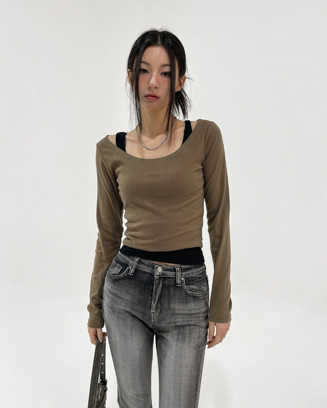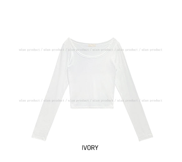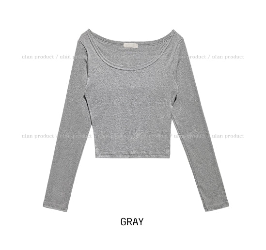 [U-BASIC] Lend off U-neck basic crop long sleeves