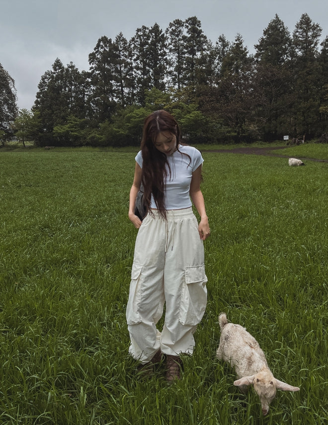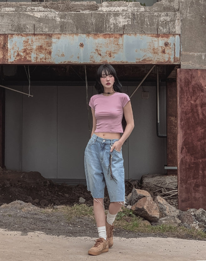 [U-BASIC] Lip Ribbed Crop Cap Short Sleeves