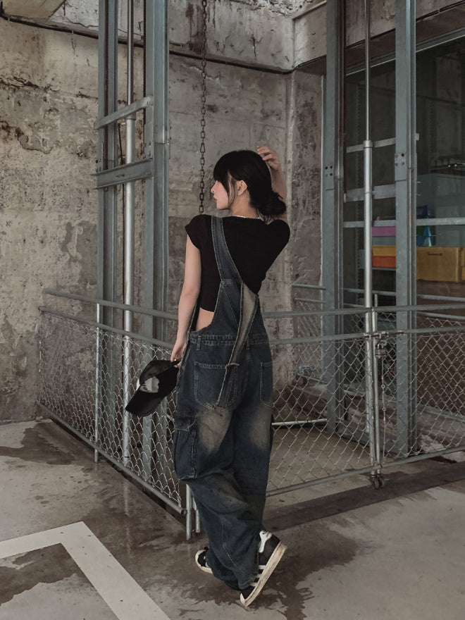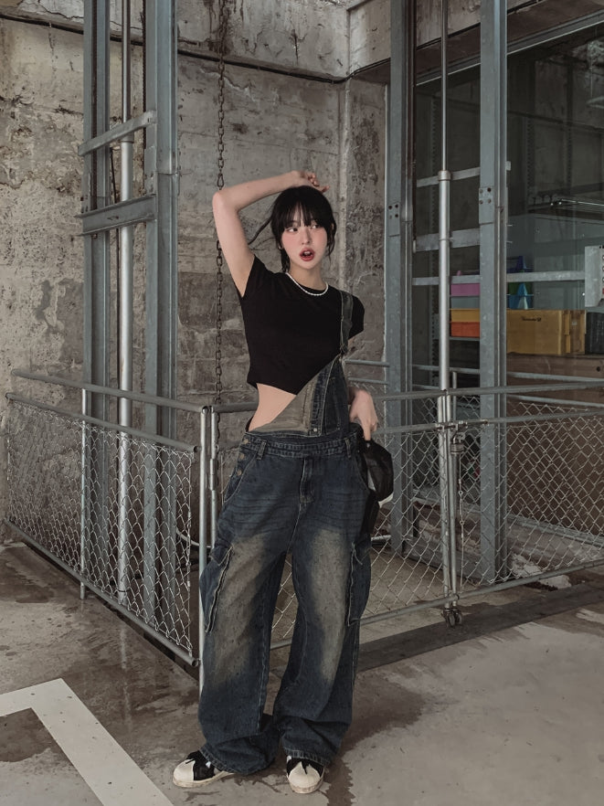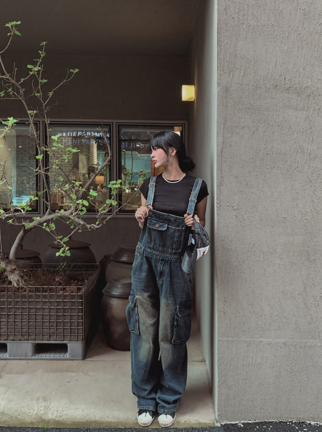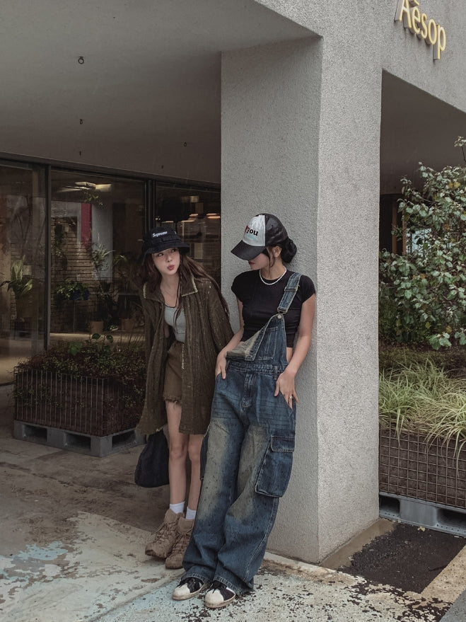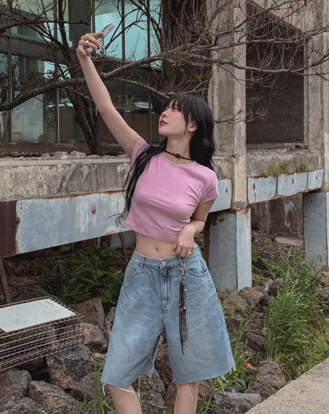 [U-BASIC] Lip V-Neck Cropped Caps Short Sleeve