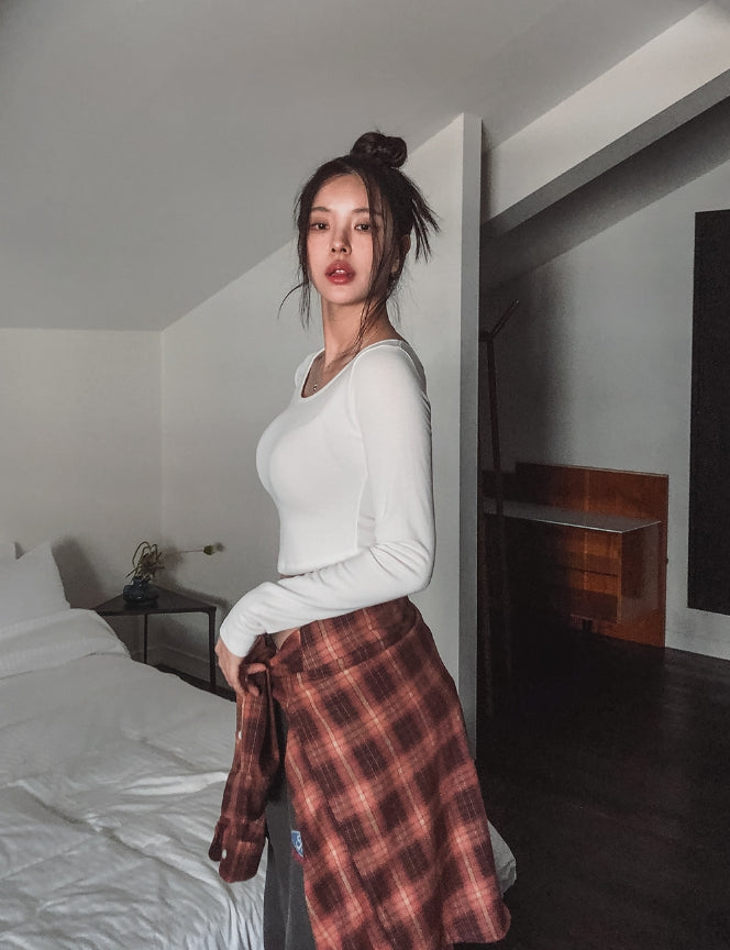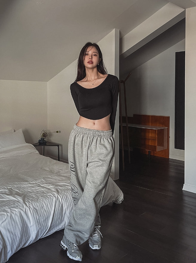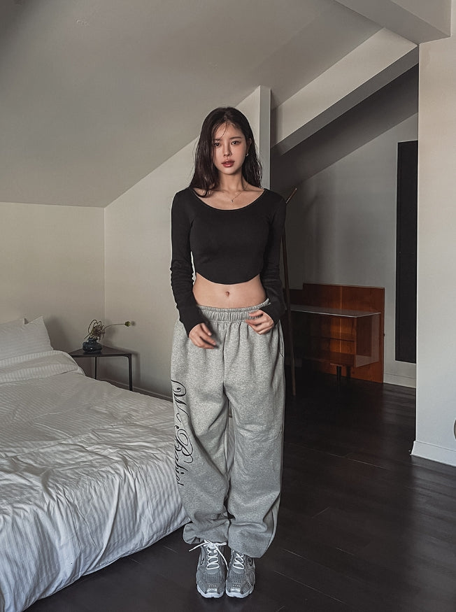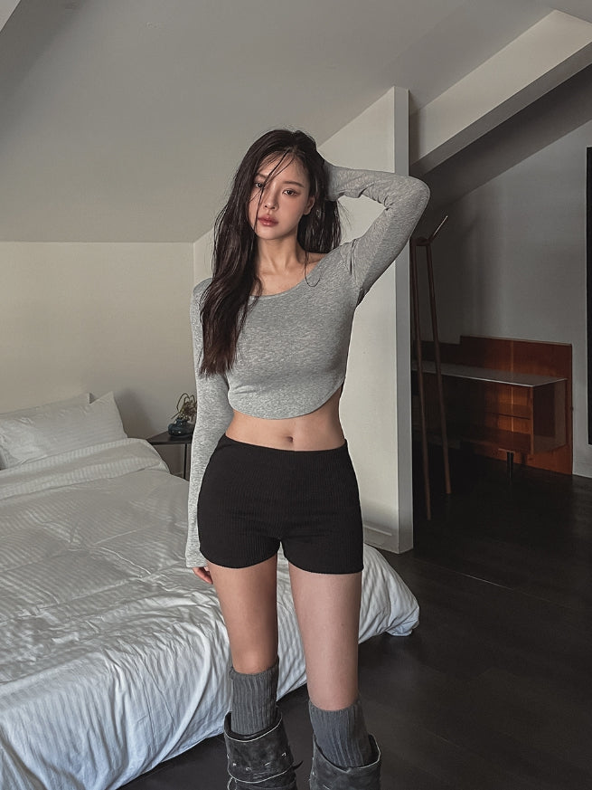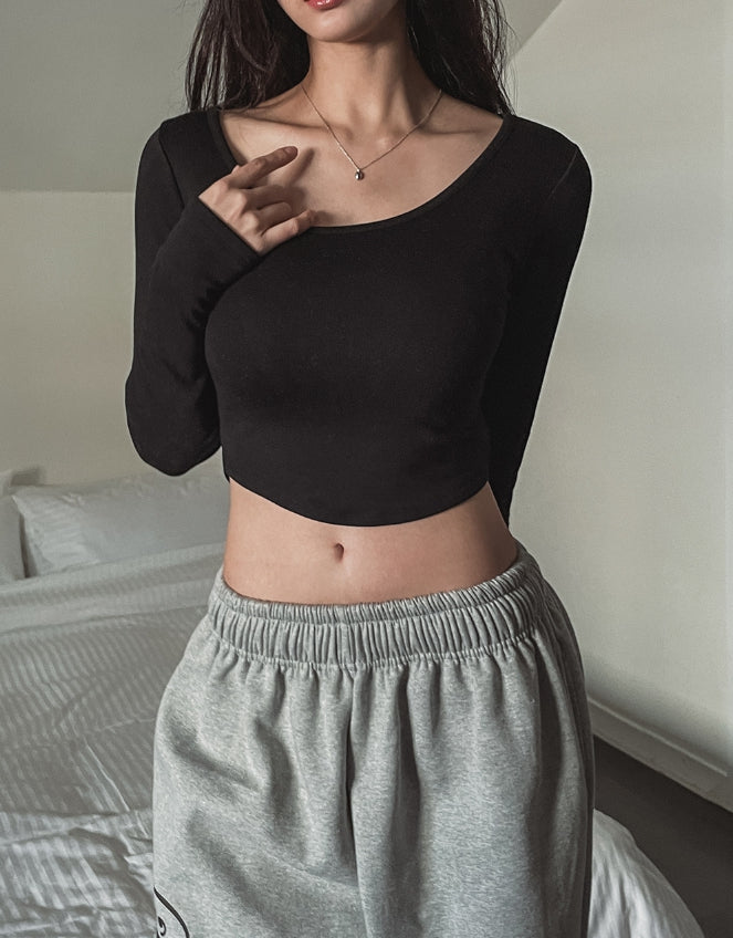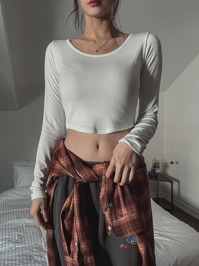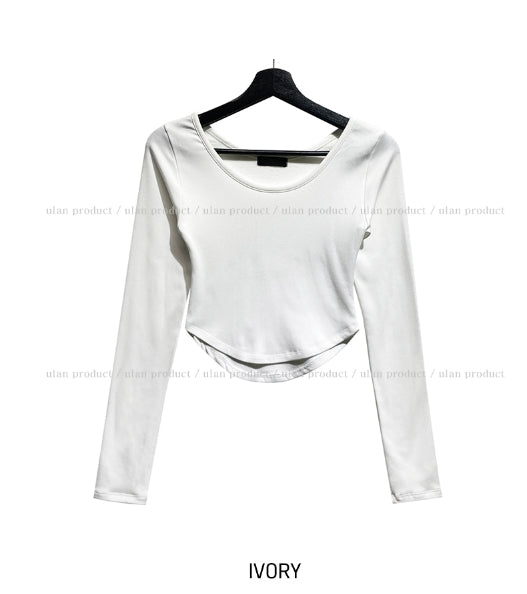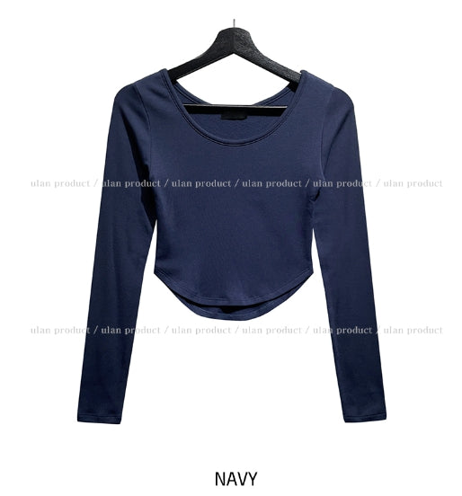 [U-BASIC]ミズコクロップラウンドフリース長袖Tシャツ