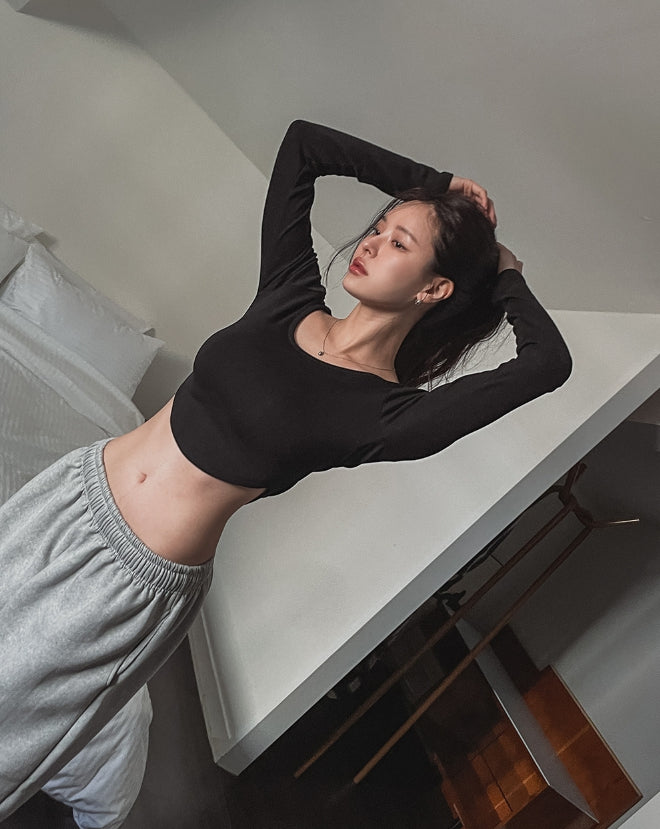 [U-BASIC] Mizuko crop round fleece long sleeves