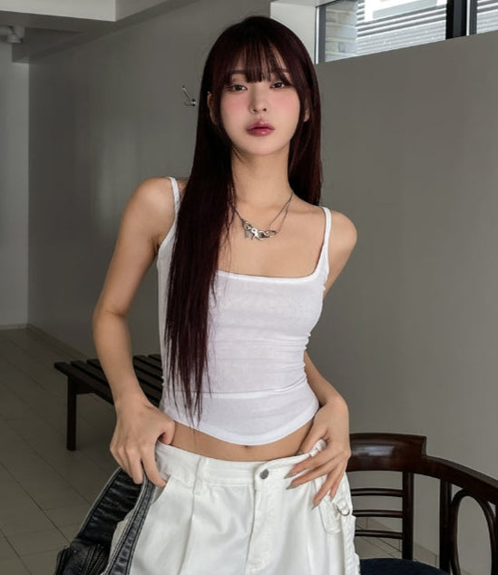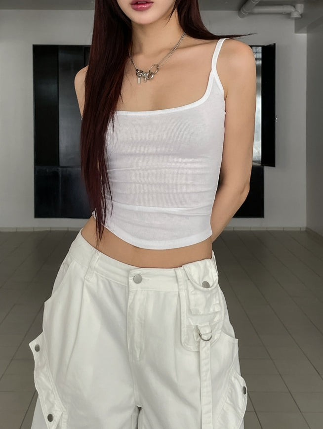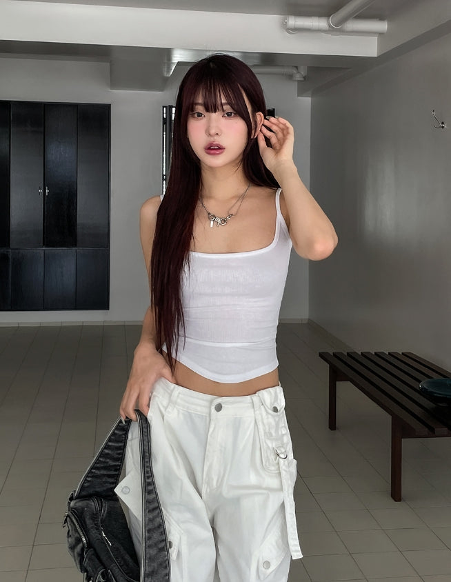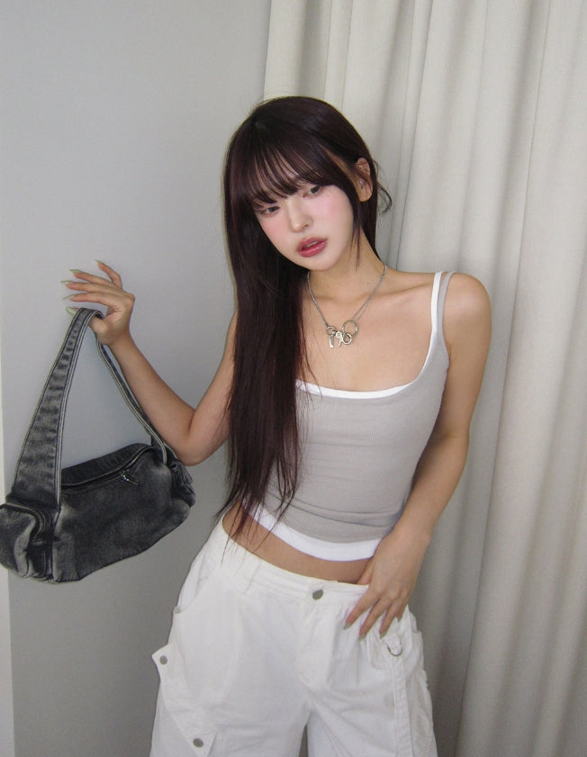 [U-BASIC]ポリカバーアップリブレイヤーキャミソール