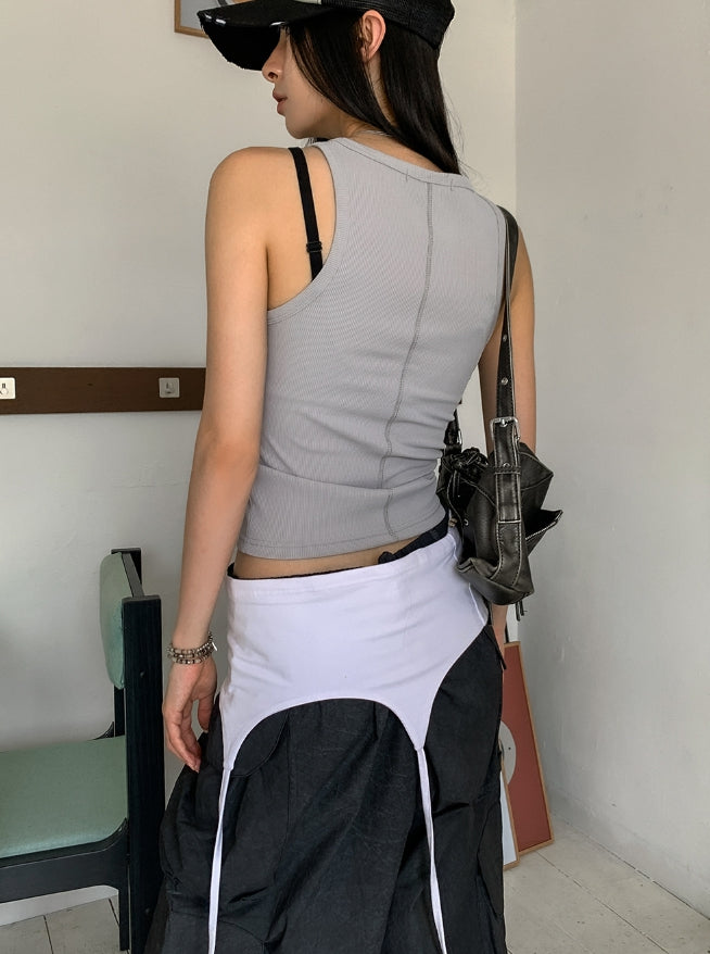 [U-BASIC]プリン切開ラウンドリブタンクトップ