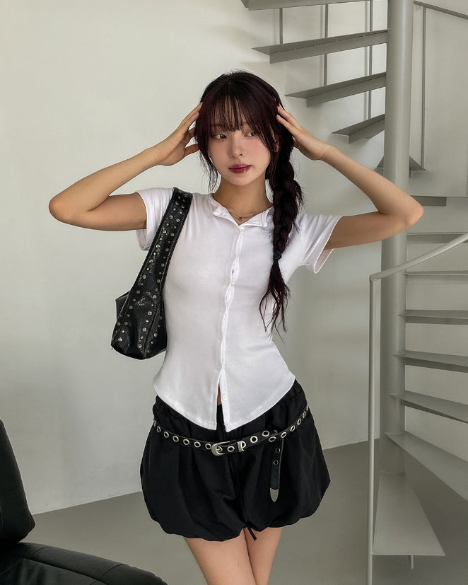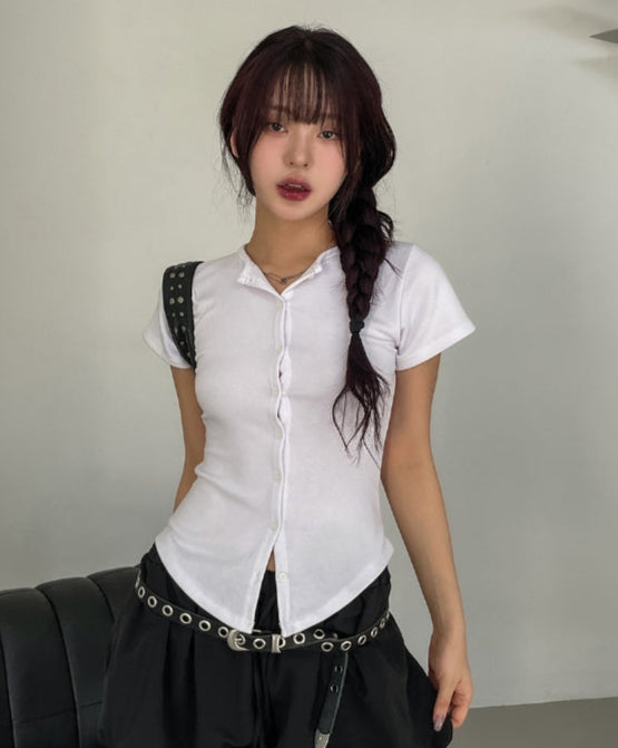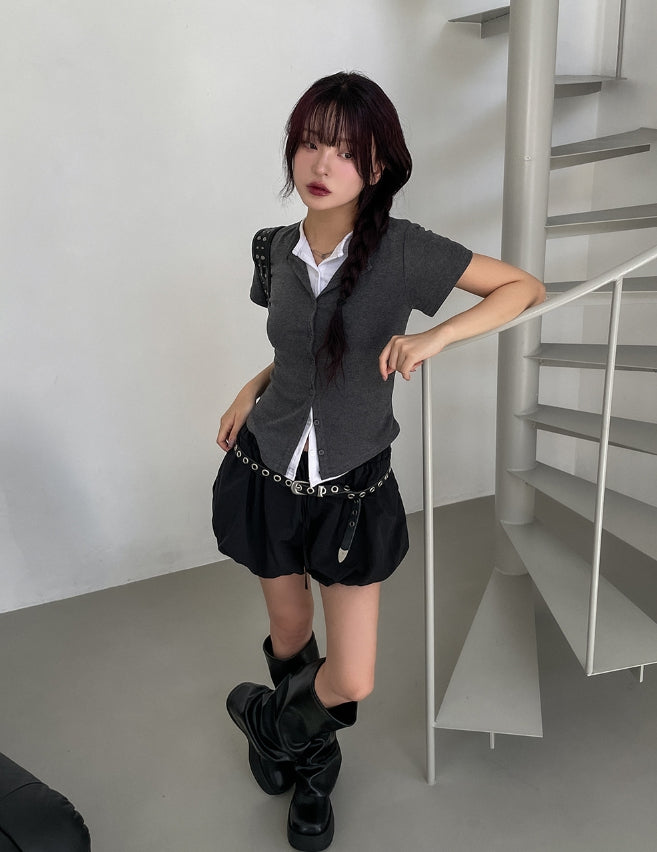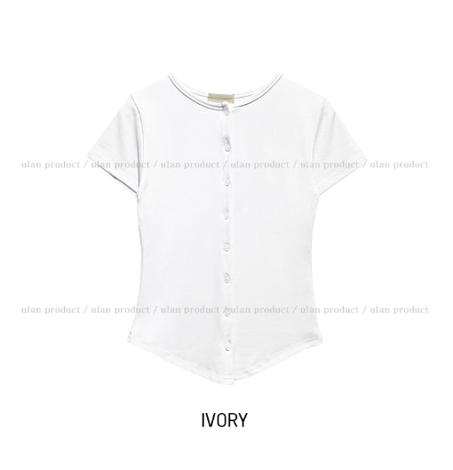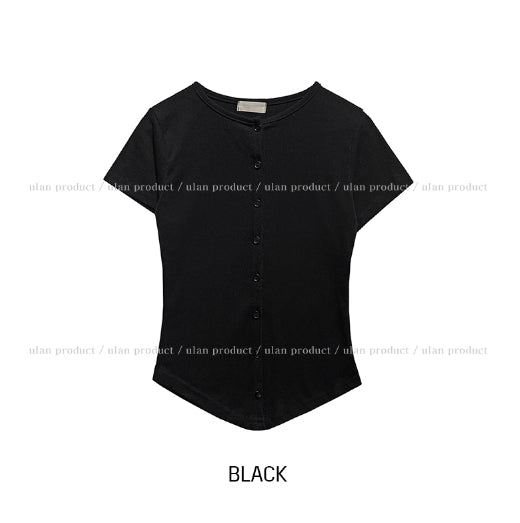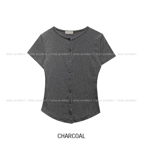 [U-BASIC] Roundy Slim Button Short Sleeve Cardigan