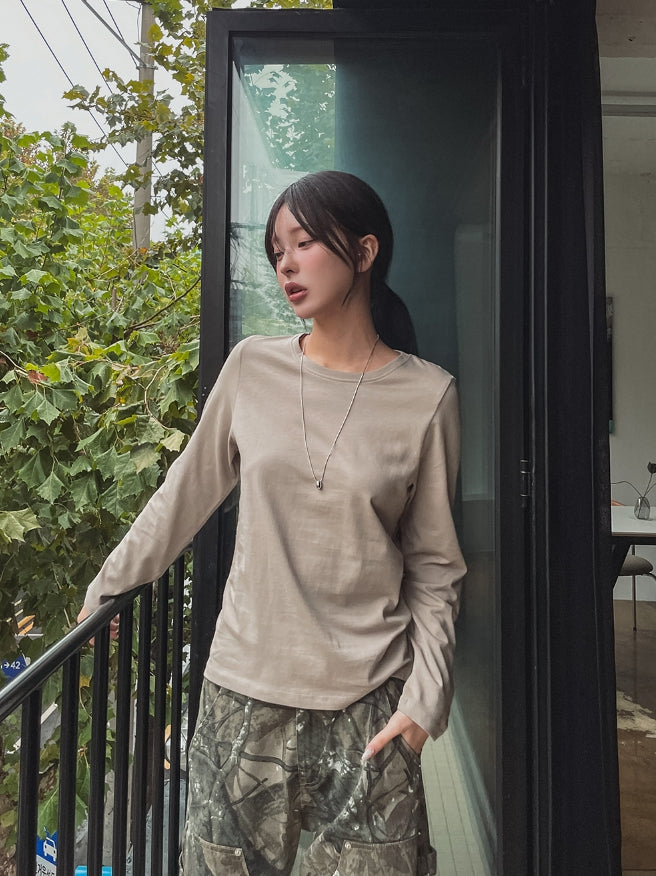[U-BASIC] Silket Round Cotton Long Sleeve