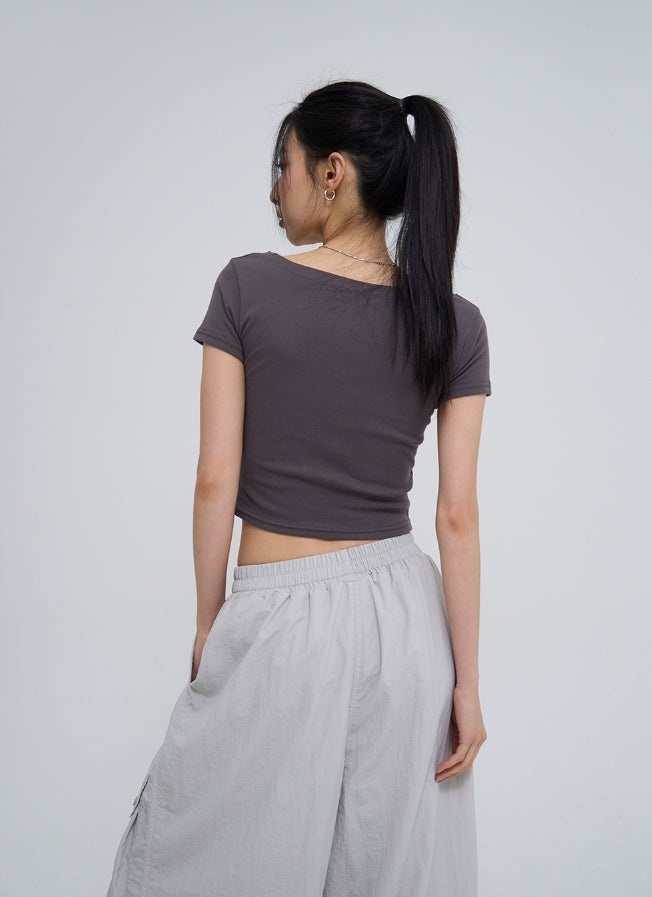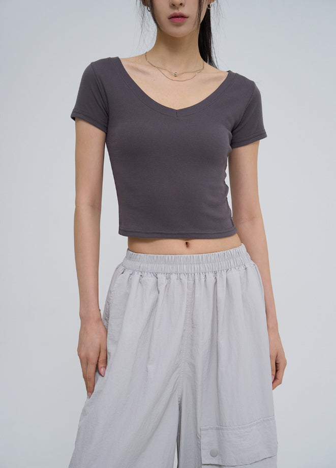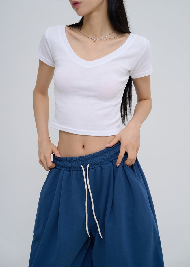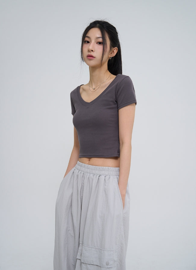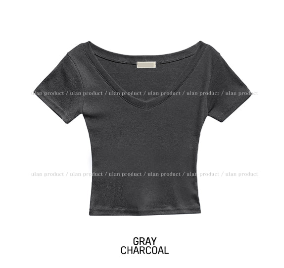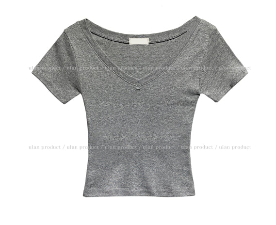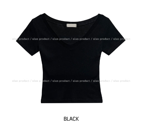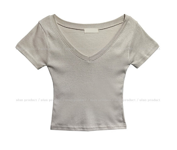 [U-BASIC] Soft cotton V-neck cropped T-shirt