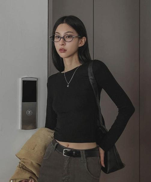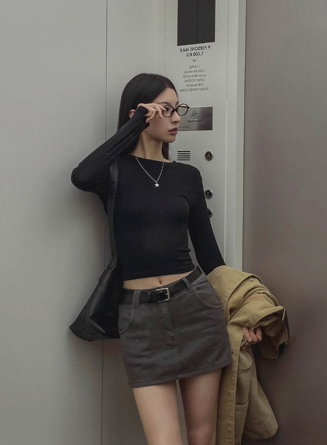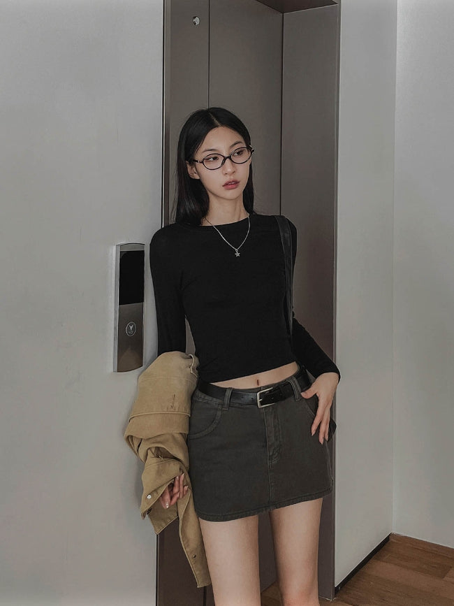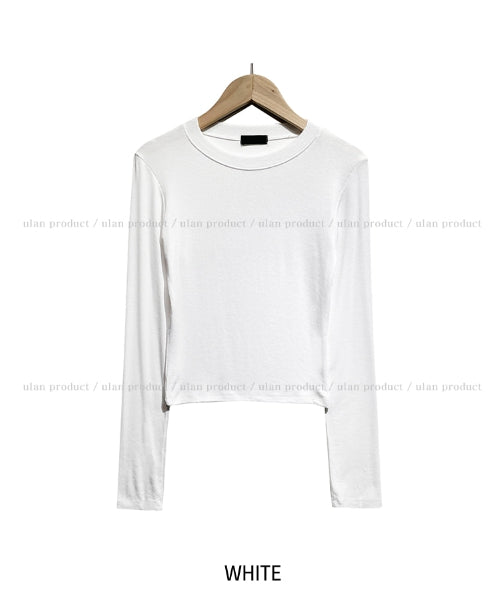 [U-BASIC] Soft Ribbed Round Crop Long Sleeve