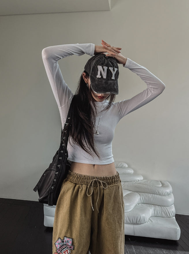 [U-BASIC]ソフトリブラウンドクロップ長袖Tシャツ