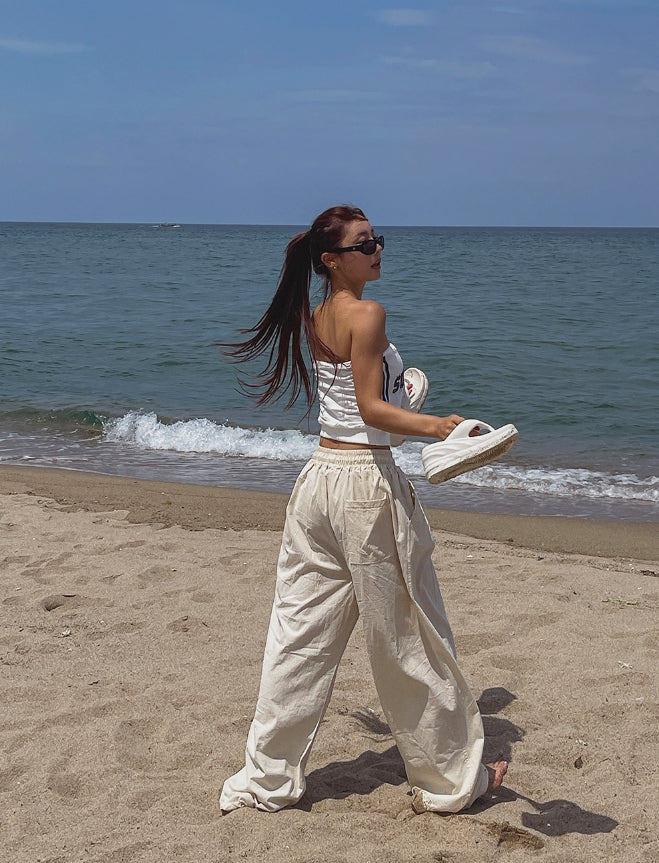 [U-BASIC] Summer Pintuck Linen Wide Pants