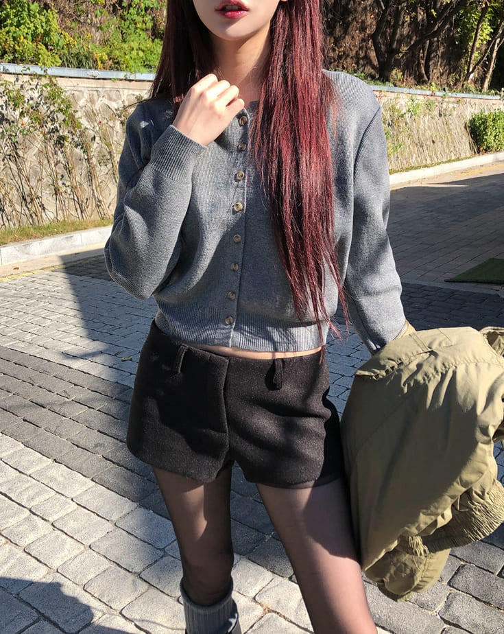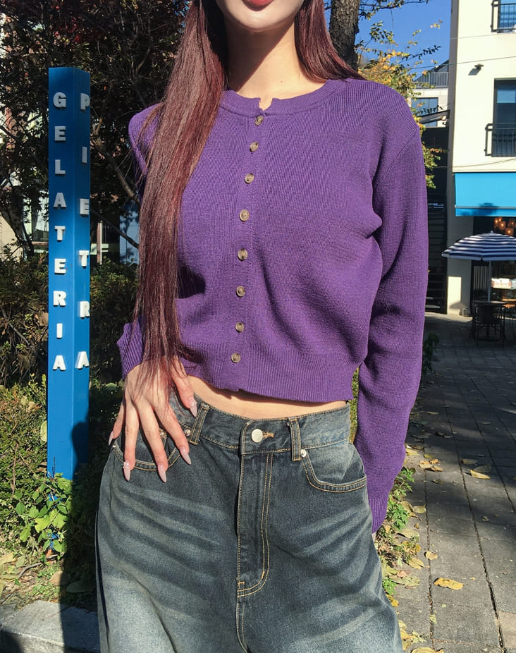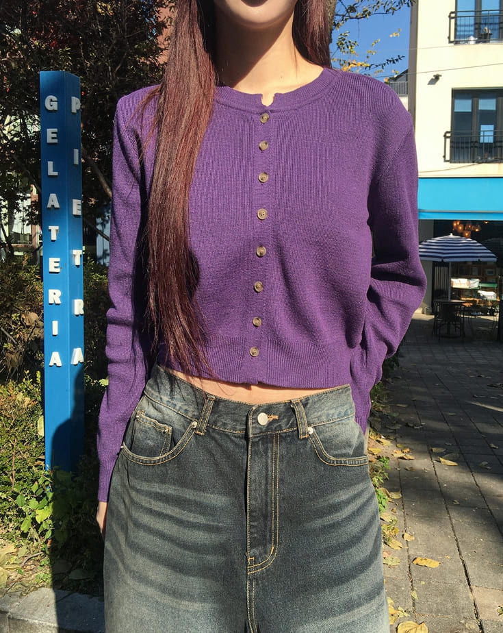 [U-BASIC] Woody Semi-Crop Round Cardigan