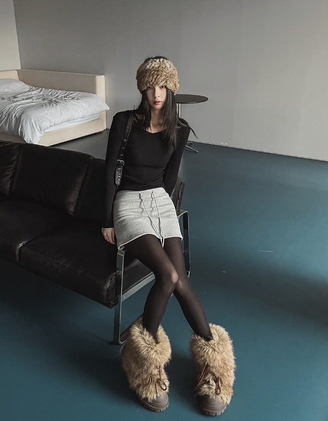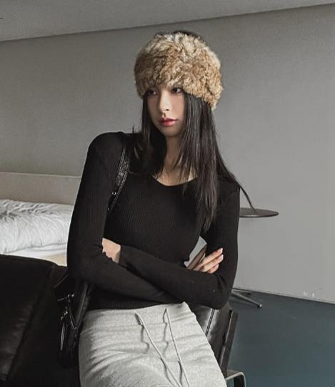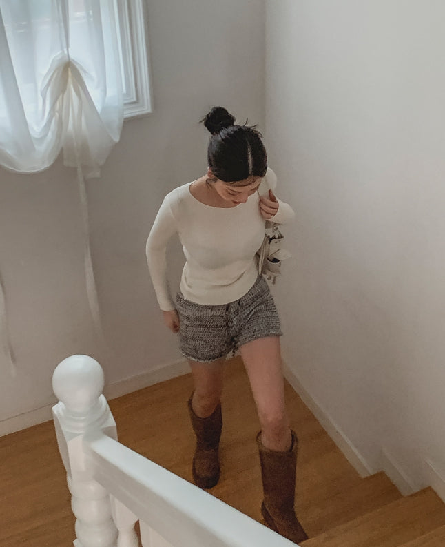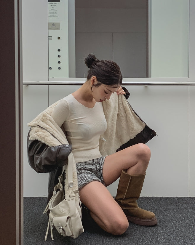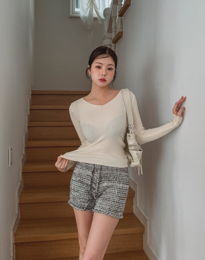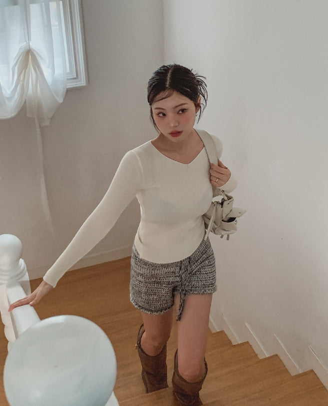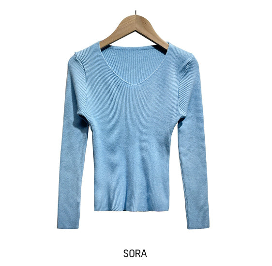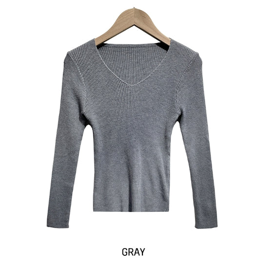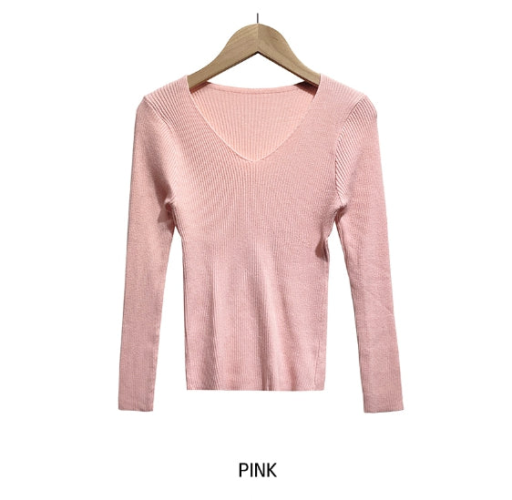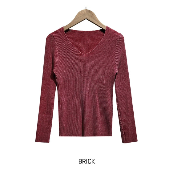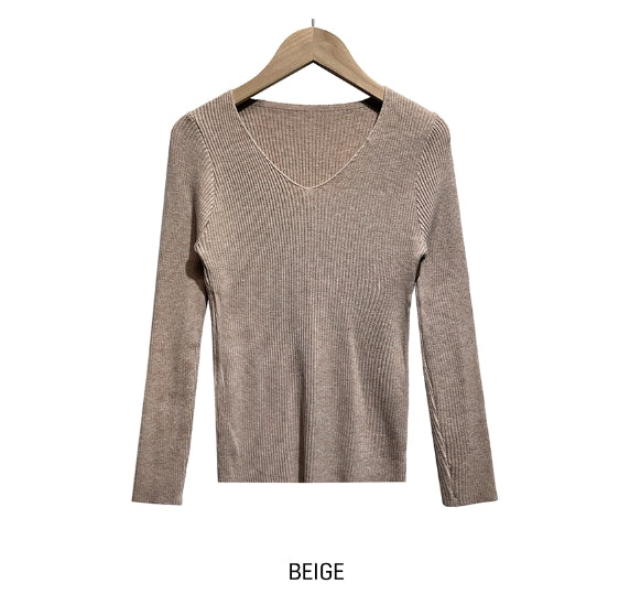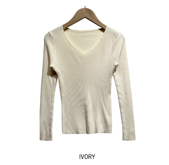 [U-BASIC] Yuki V-neck Slim Ribbed Long Sleeve Knit