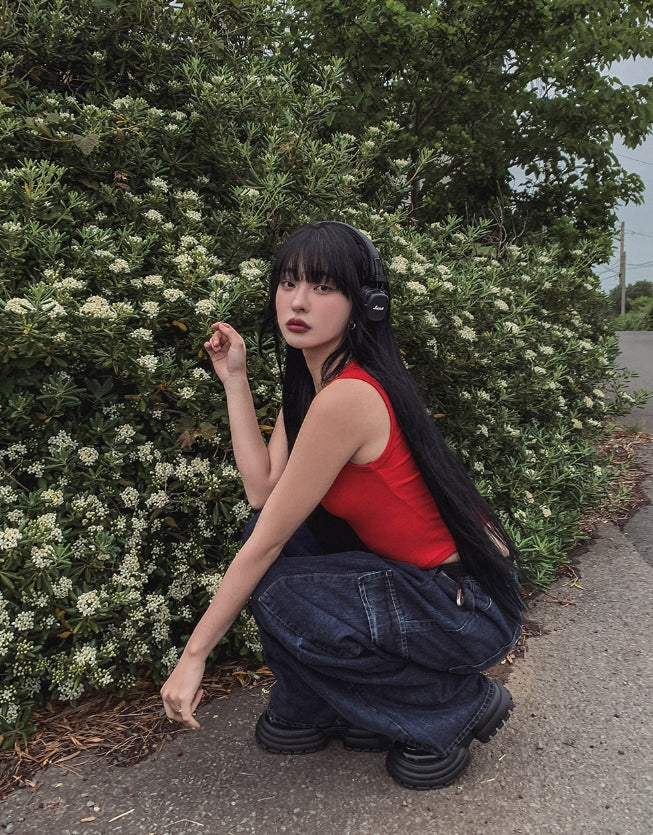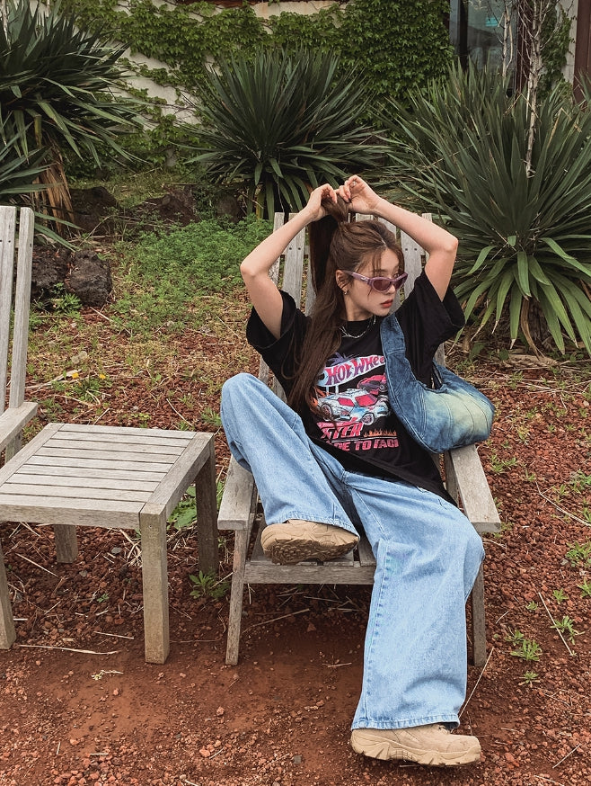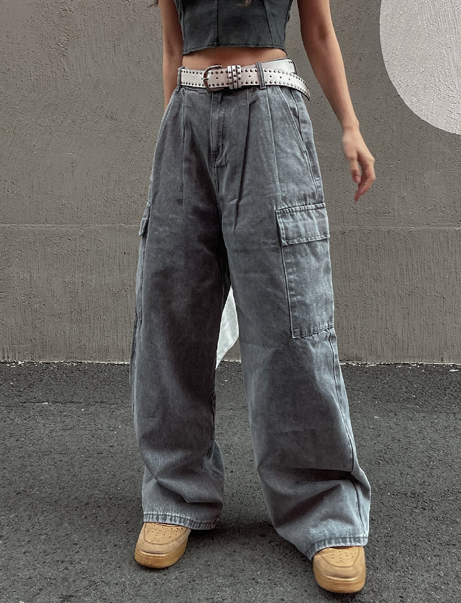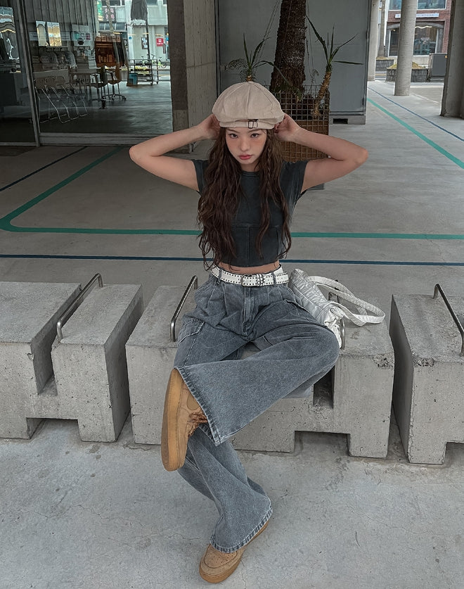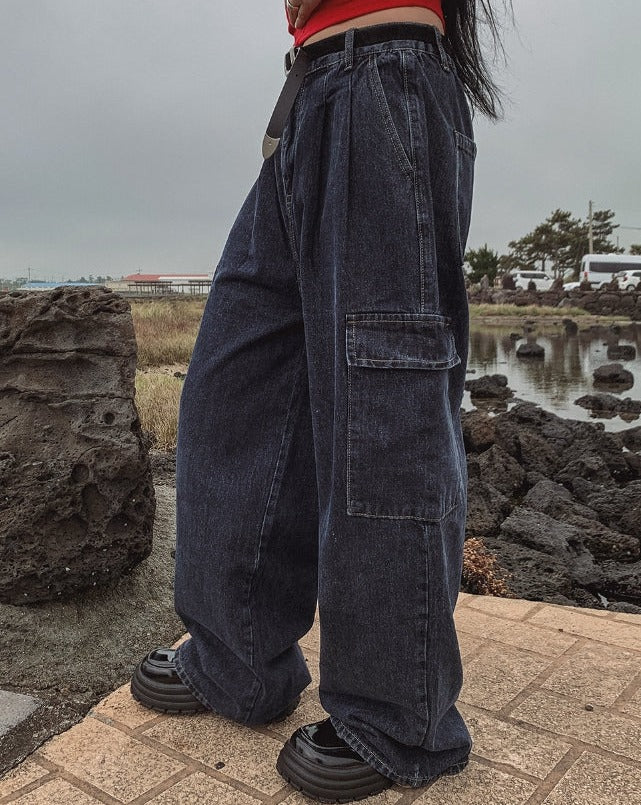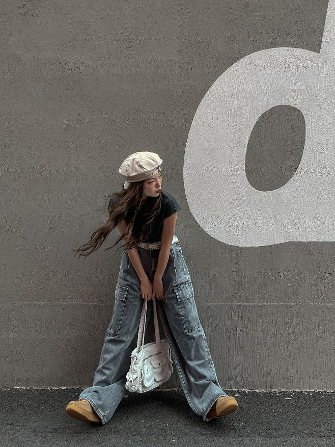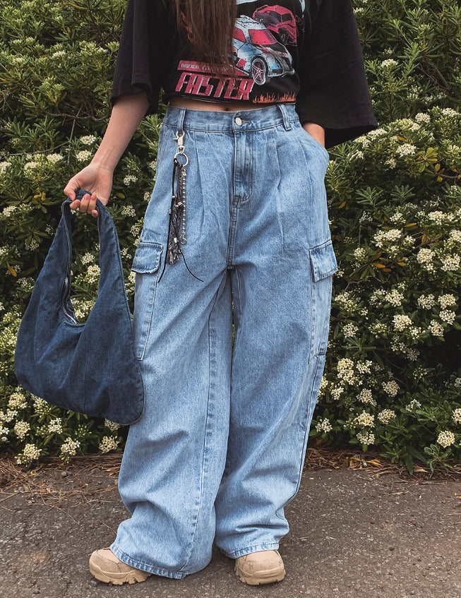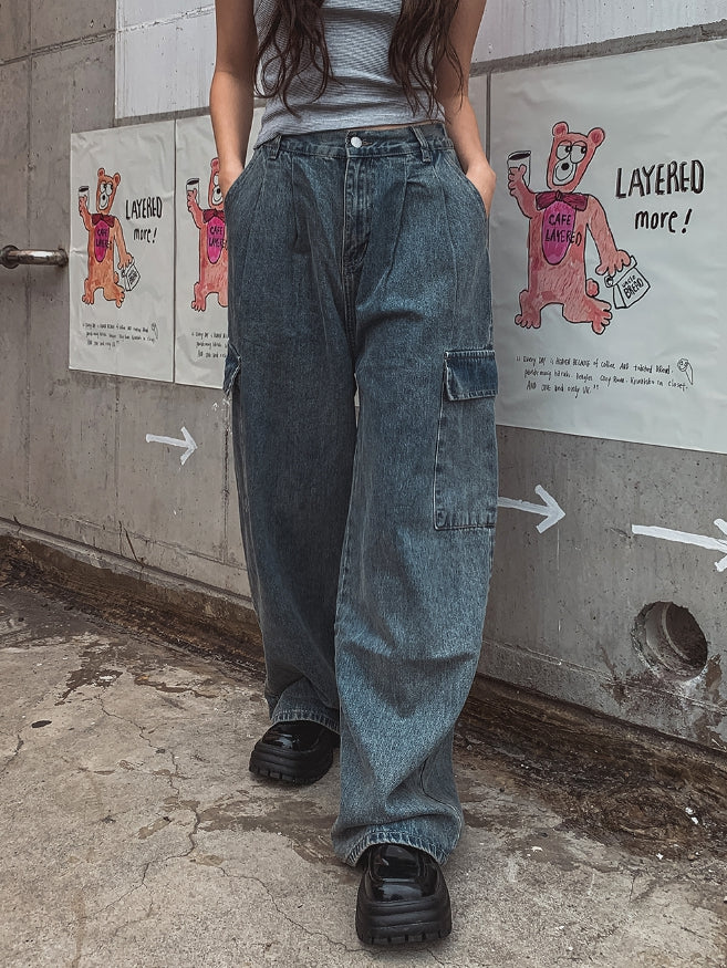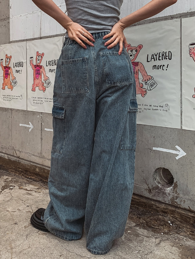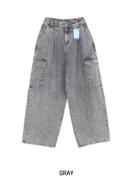 [U-DENIM/Planning Products] Summer Pintuck Wide Cargo Denim Pants