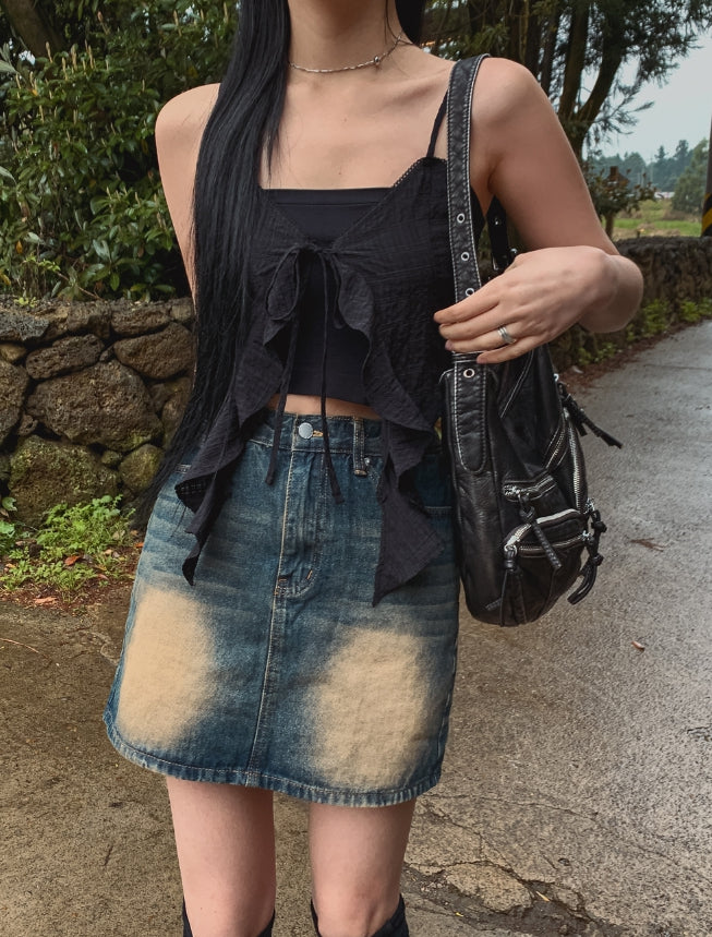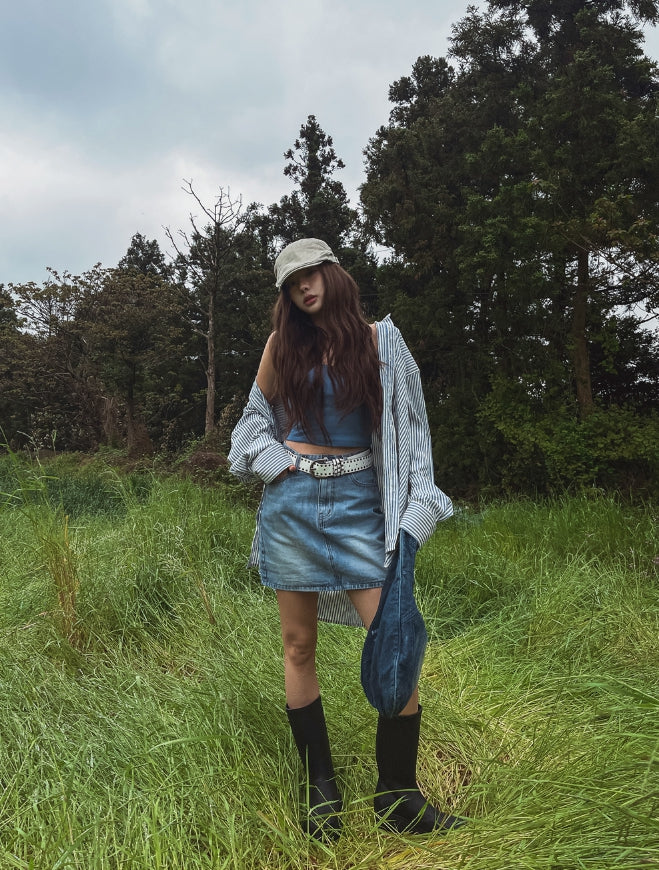 [U-DENIM Special Product] Keto Washing Denim Mini Skirt