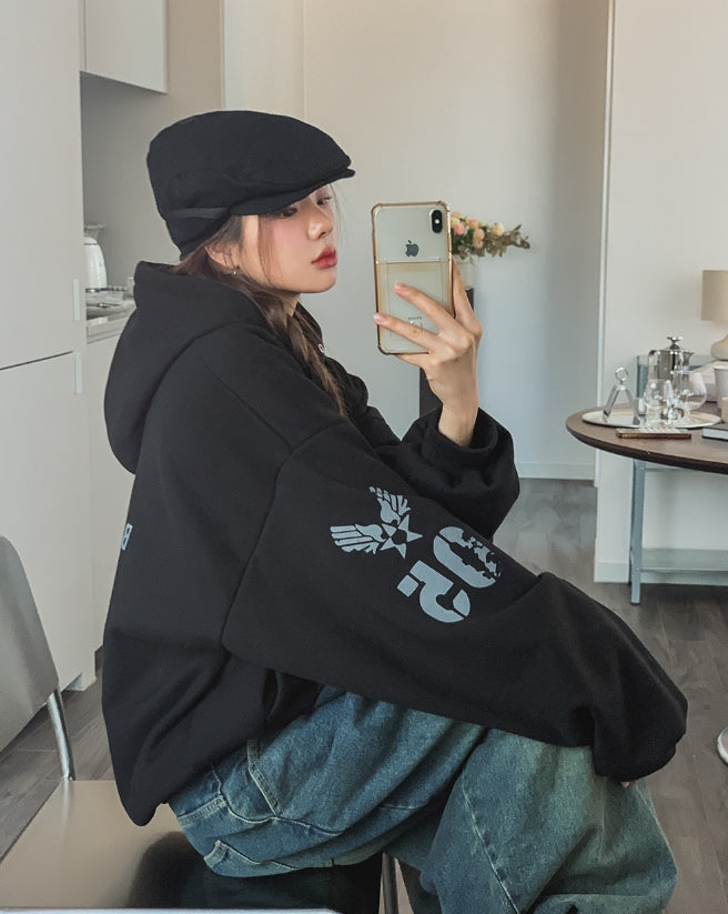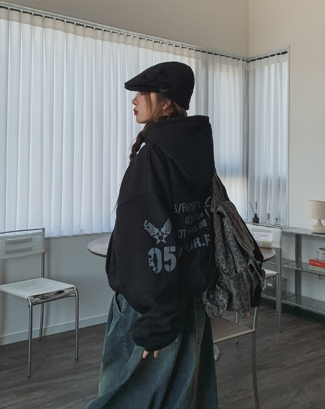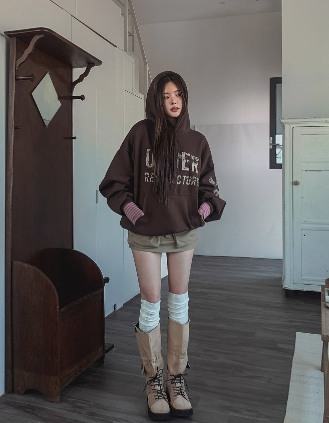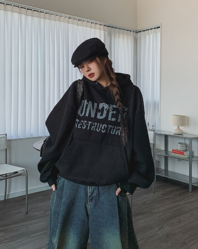 アンダーヴィンテージプリント裏起毛オーバーフード