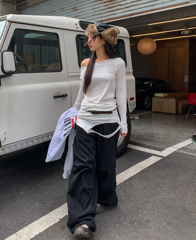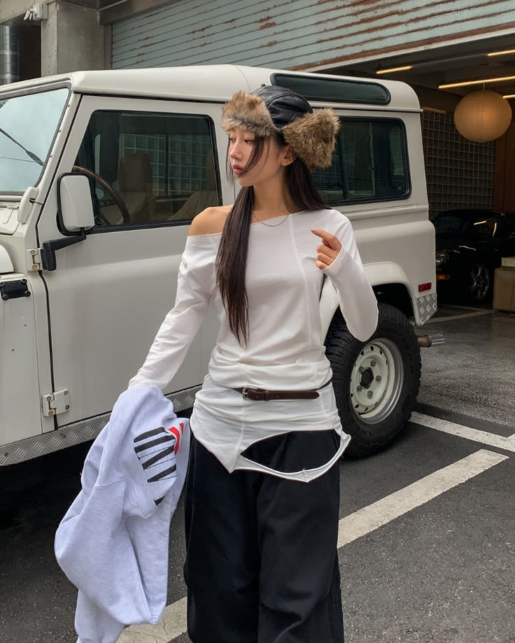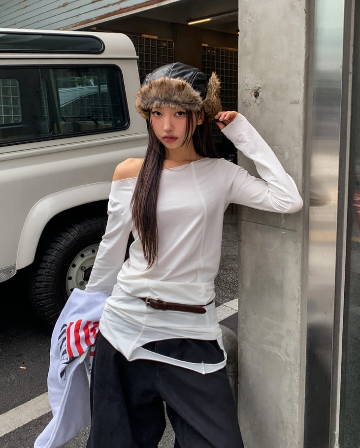 ウトカットレイヤーツーウェイ長袖Tシャツ
