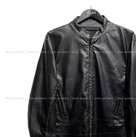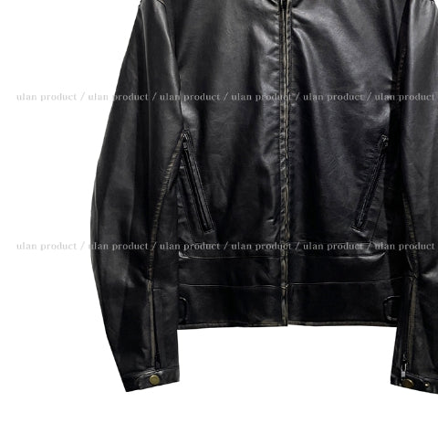 ビラハンドウォッシュ加工ローレザーバイカージャケット