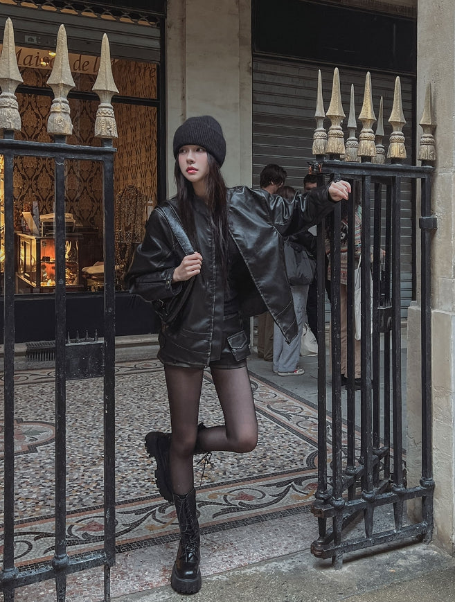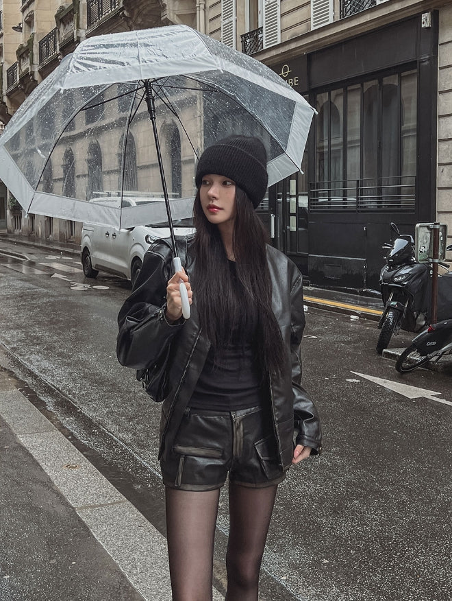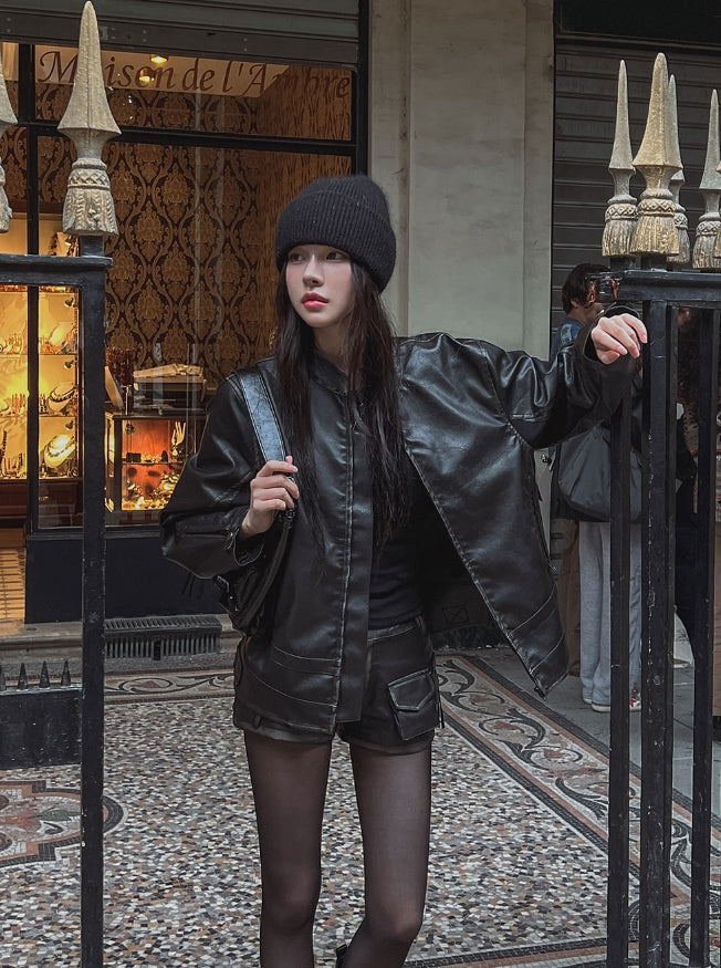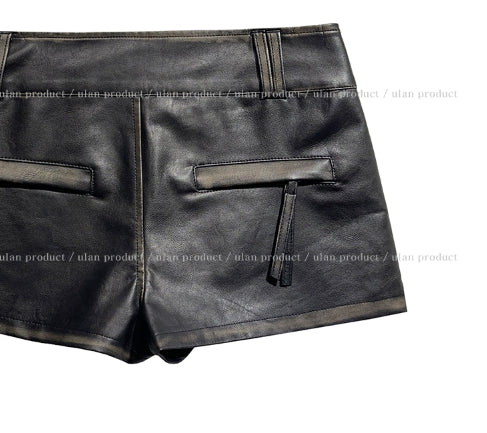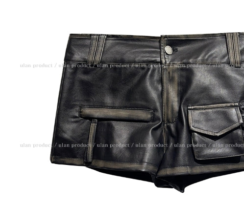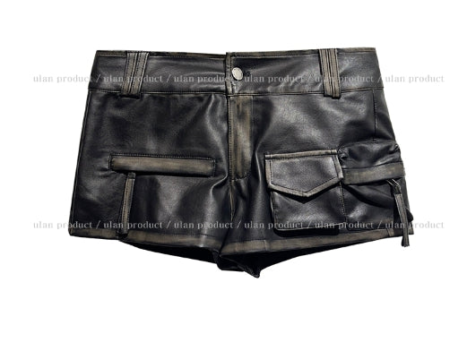 ビラハンドウォッシュ加工ローレザーショートパンツ