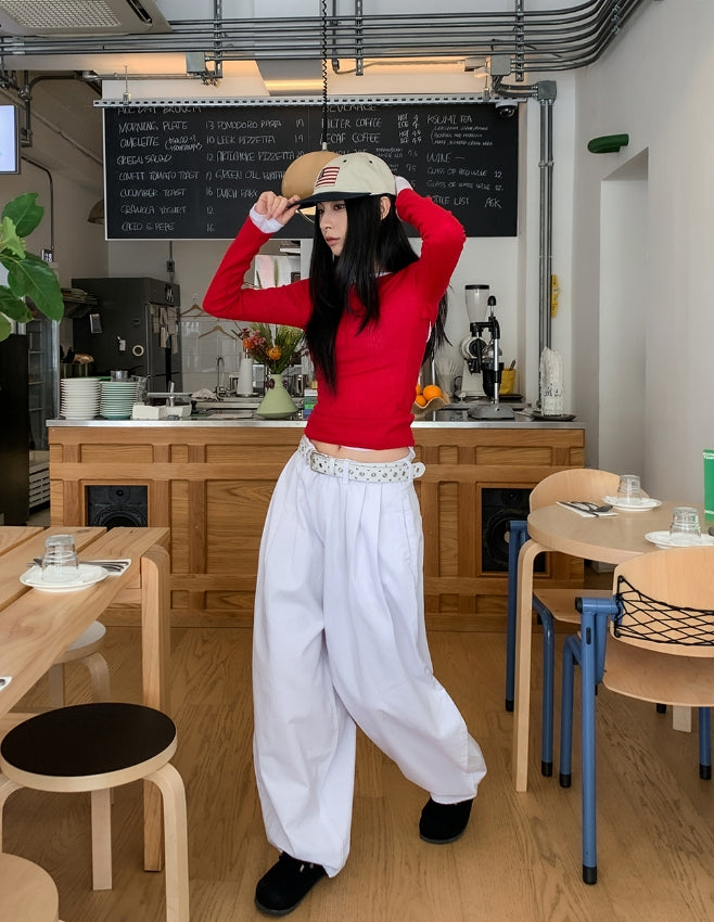 ビンツスリーピンタックバルーンワイドコットンパンツ