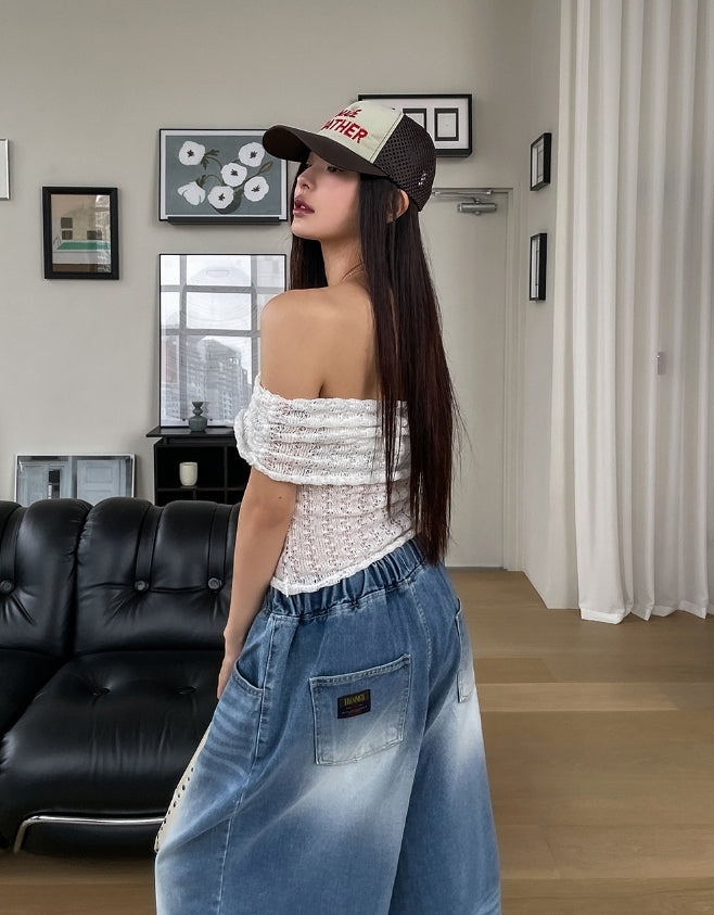-ONE SIZE (ウエスト(ゴム)54 ヒップ122 股上43 股下26 もも周り82 裾周り72 総丈69)