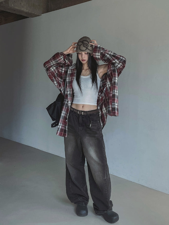 ウェイクチェックフードシャツ