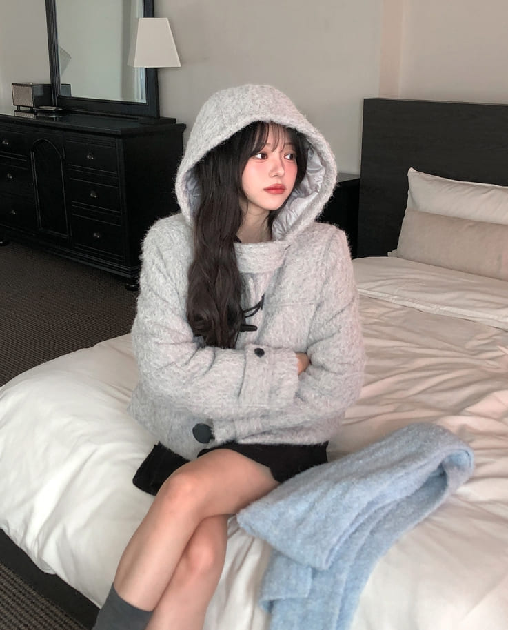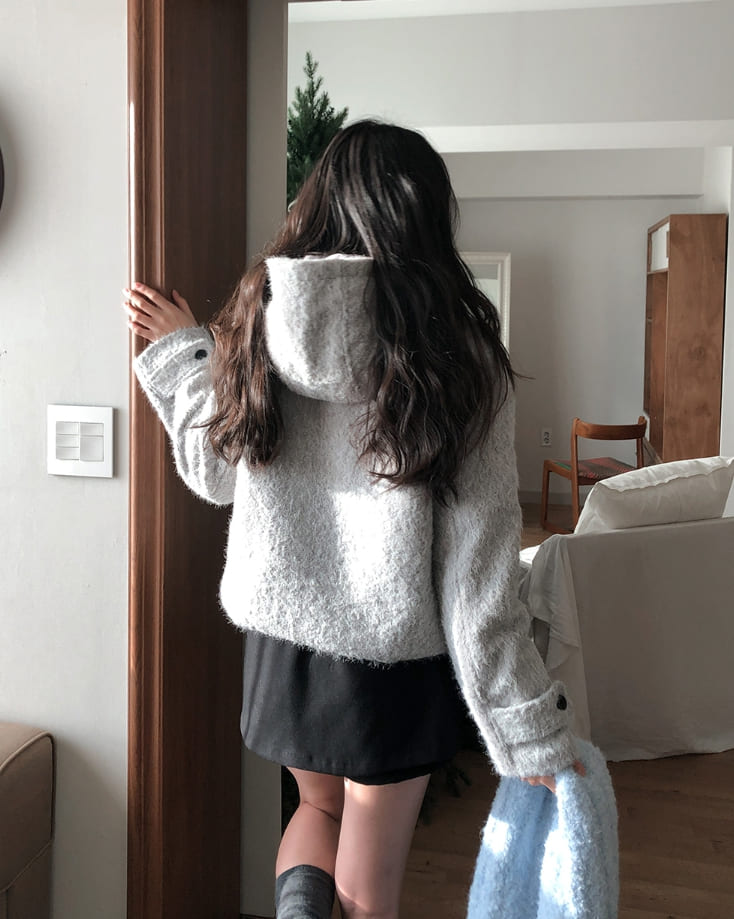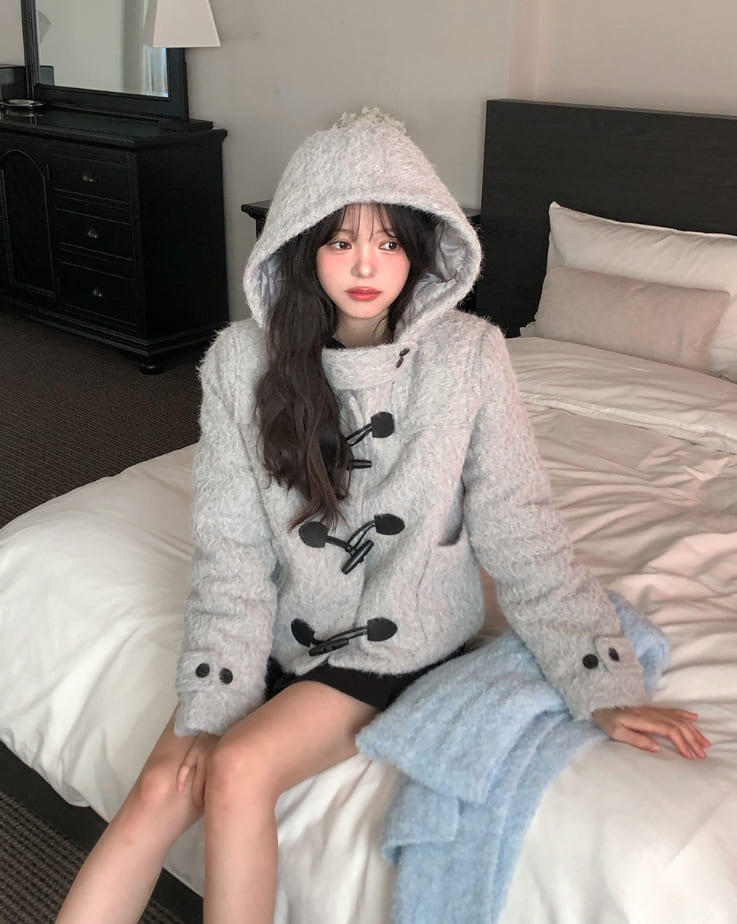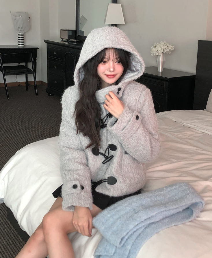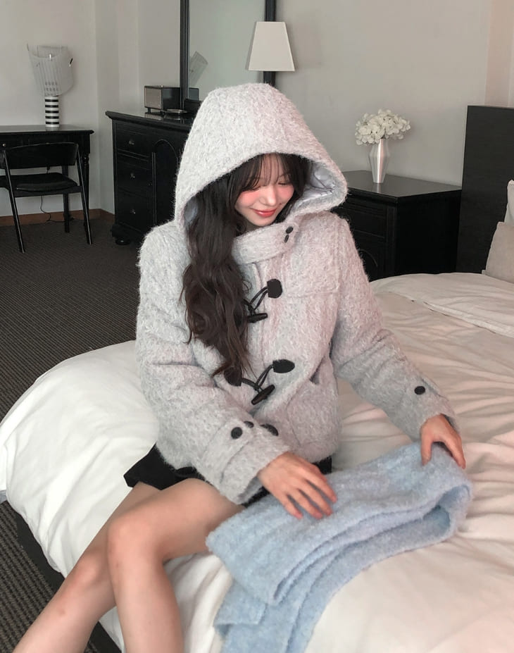 [wool 20%] Dawson Hairy Hooded Duffle Coat