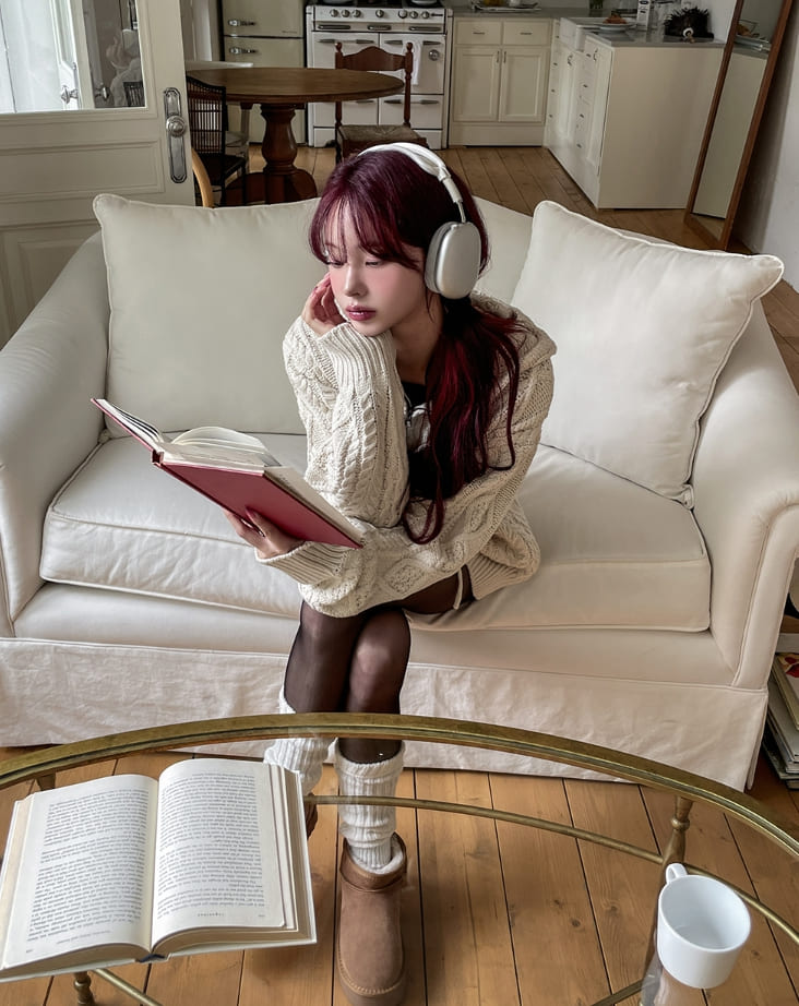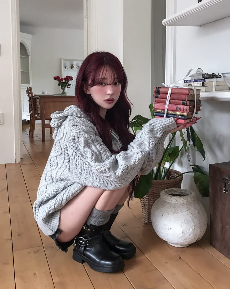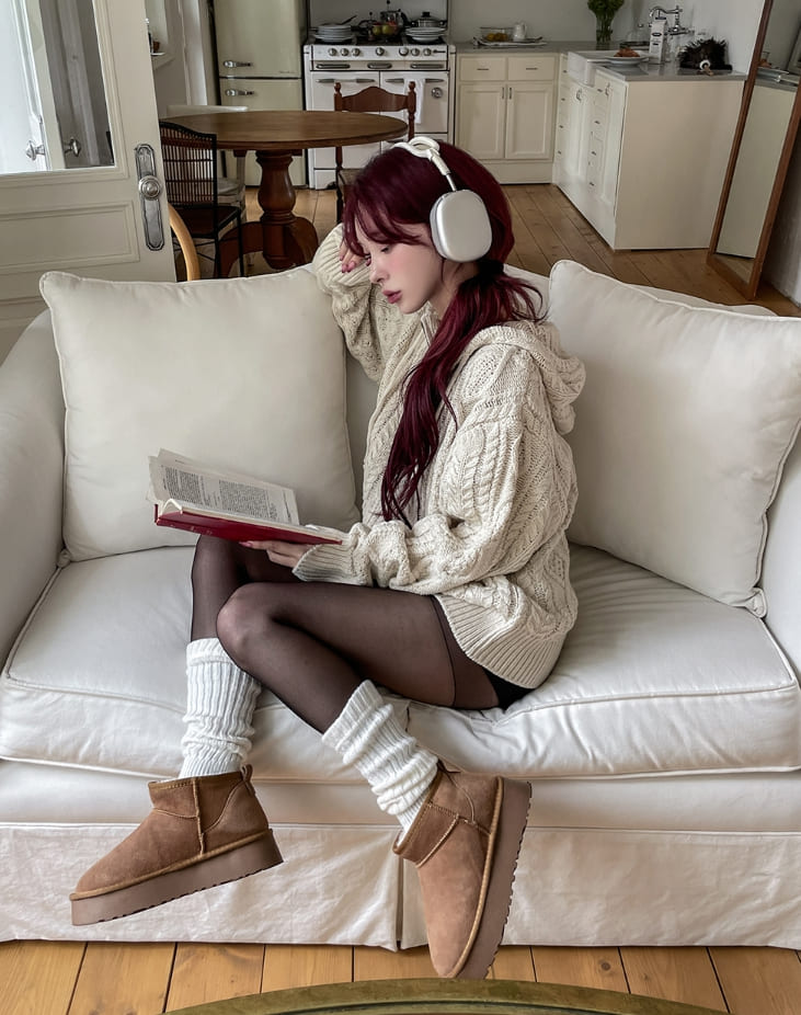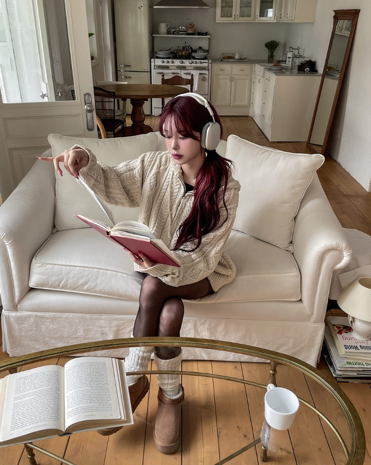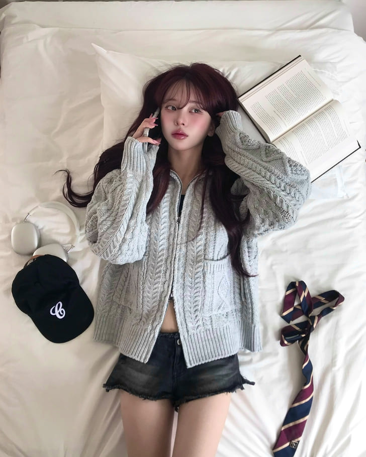 [wool30%] Woods Cable Two-Way Knit Hooded Zip-Up