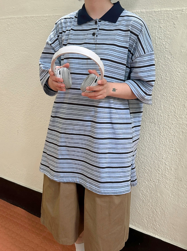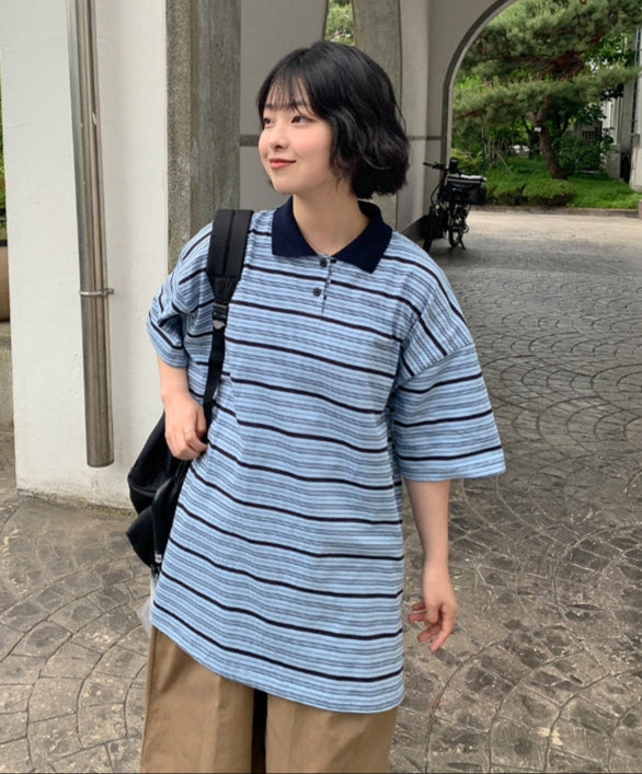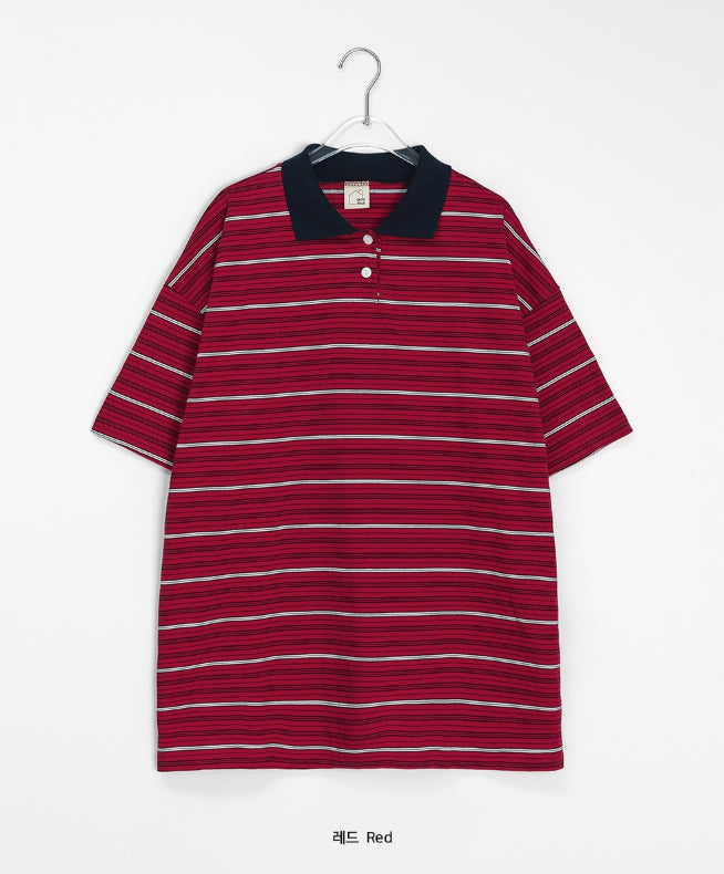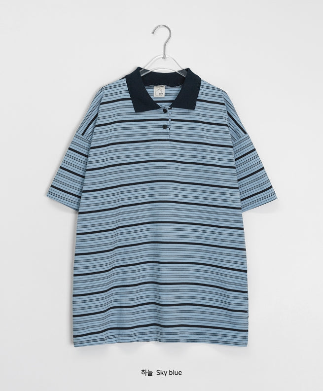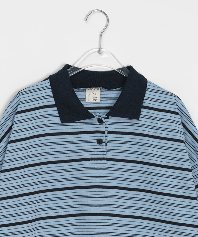 [BAONHAUS] AANS Stripe Rugby Collar Short Sleeve Tee