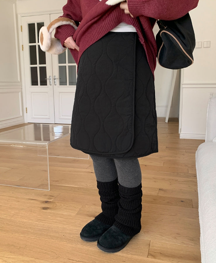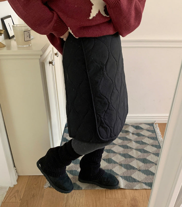 [BAONHAUS] Alle quilted padded wrap midi skirt