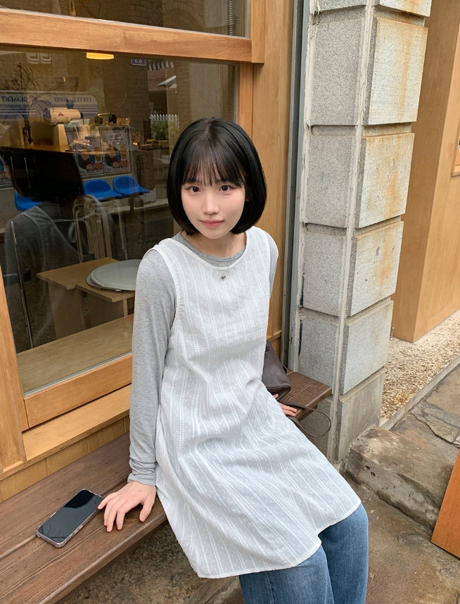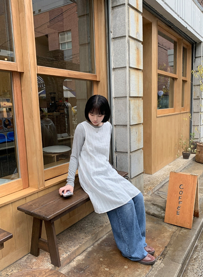 [BAONHAUS] [BASIC-ON] Zenas Basic Ribbed Round Long Sleeve Tee