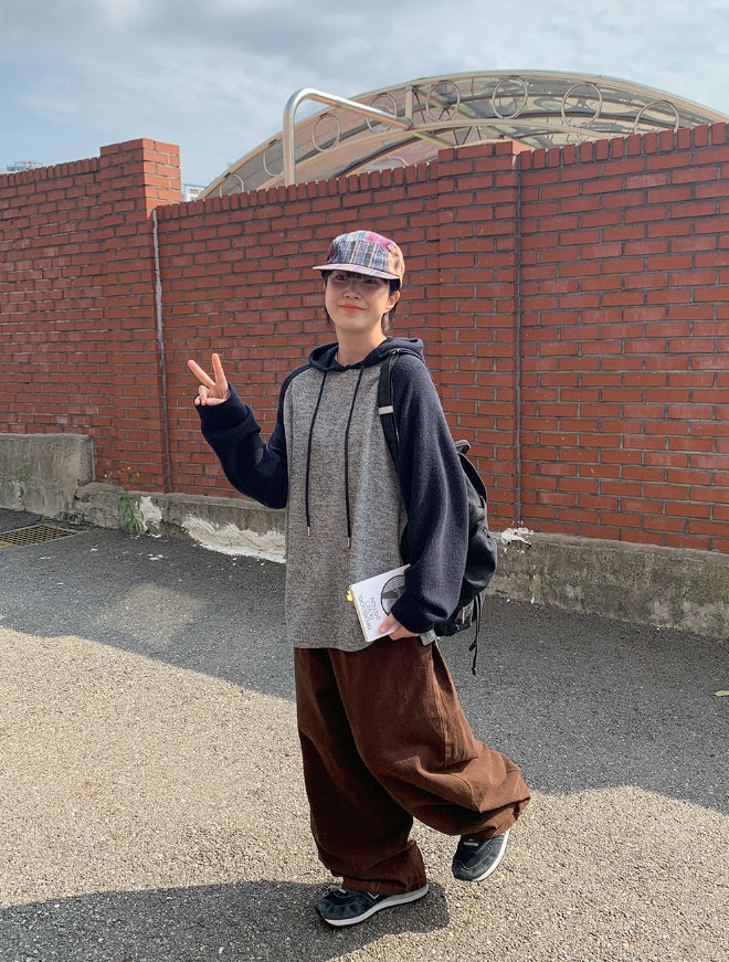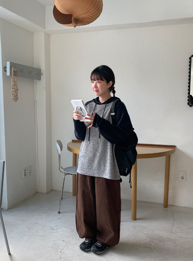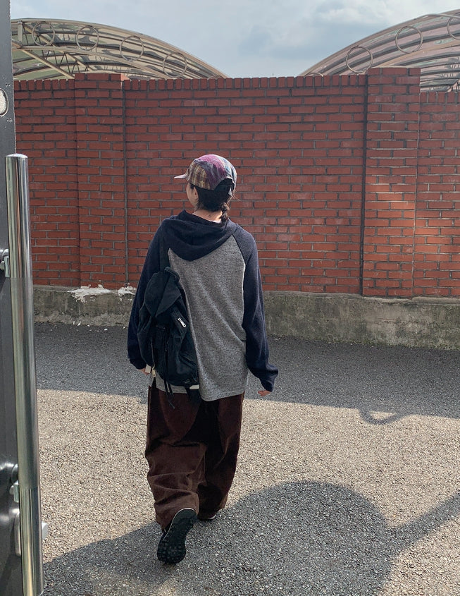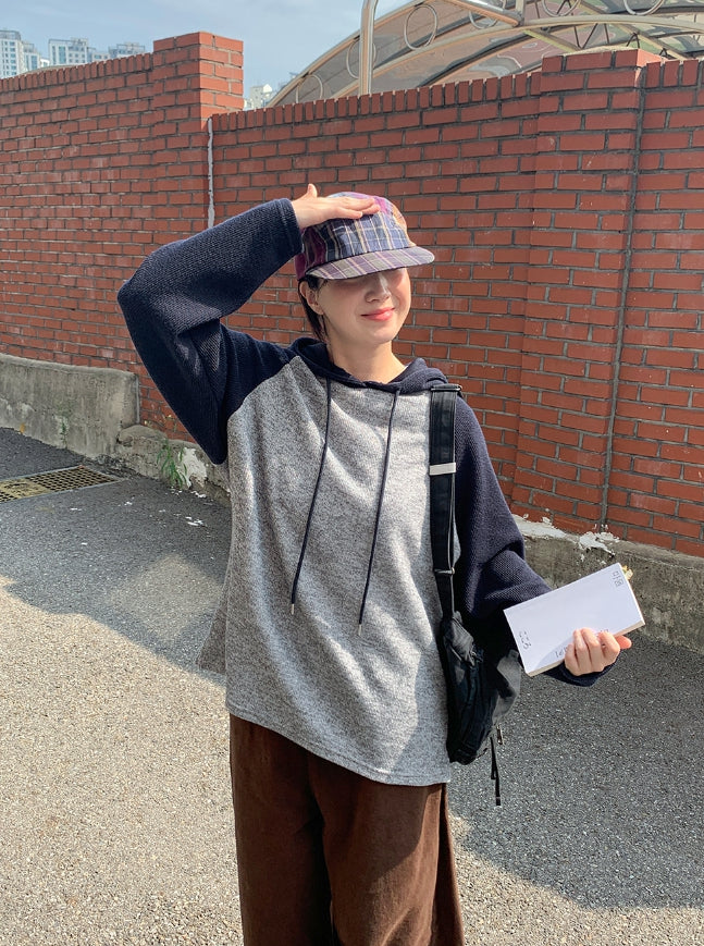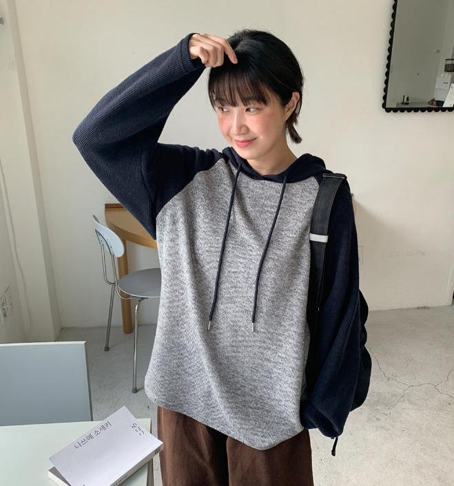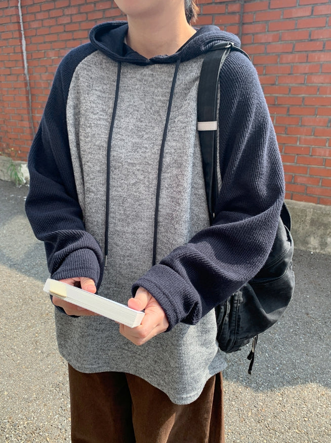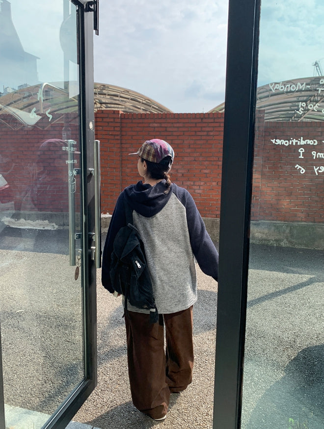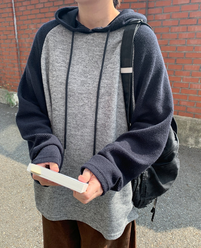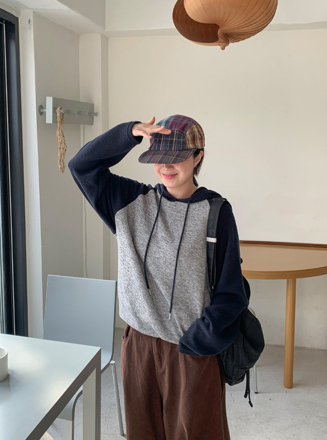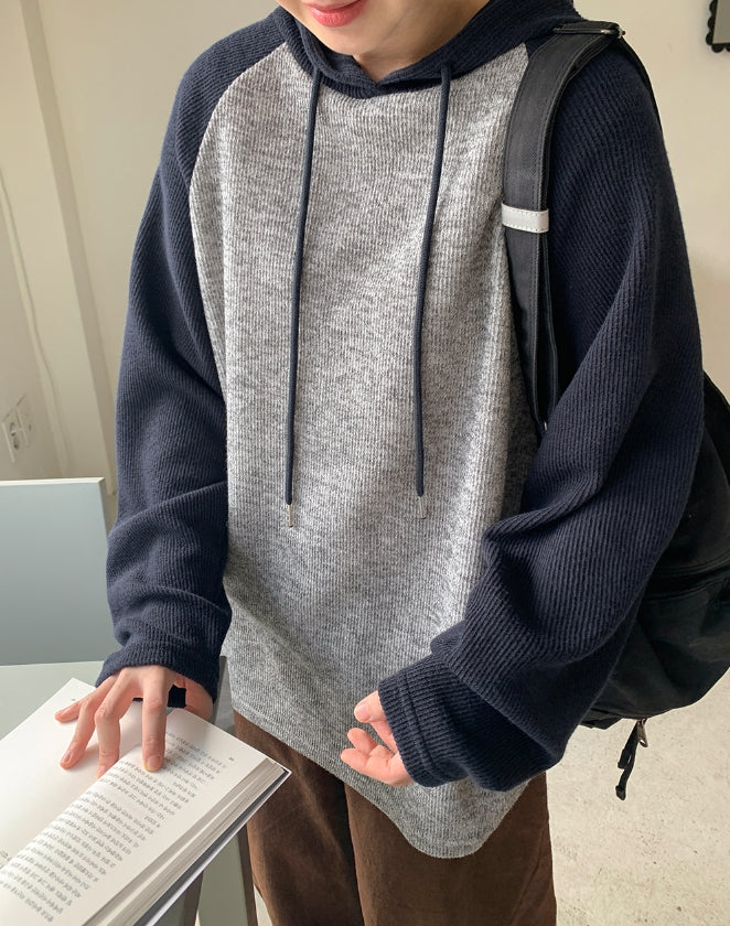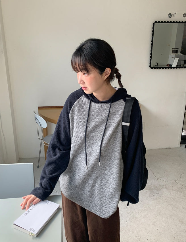 [BAONHAUS] Benas ribbed color matching raglan hoodie