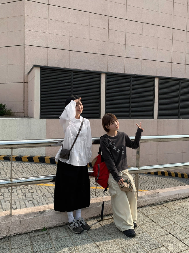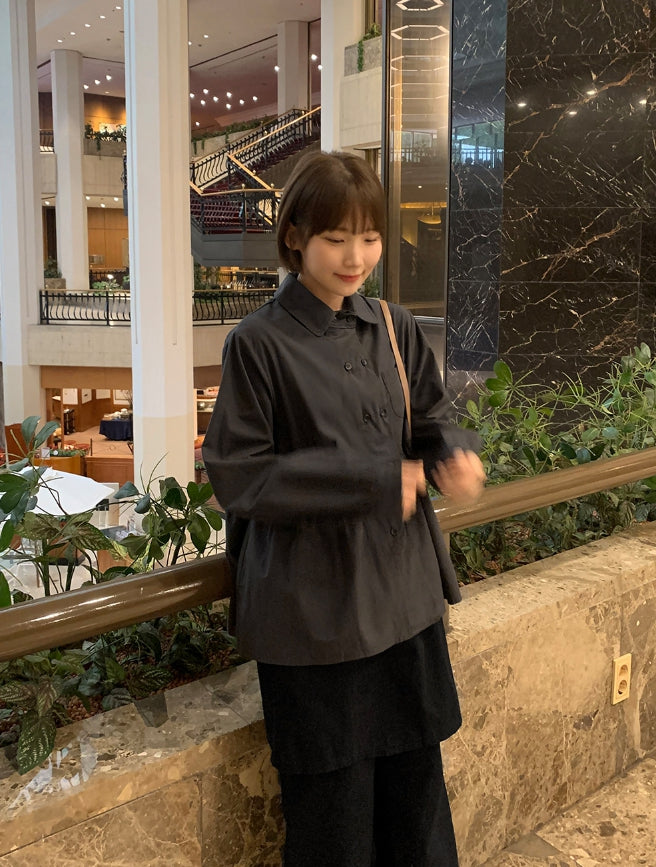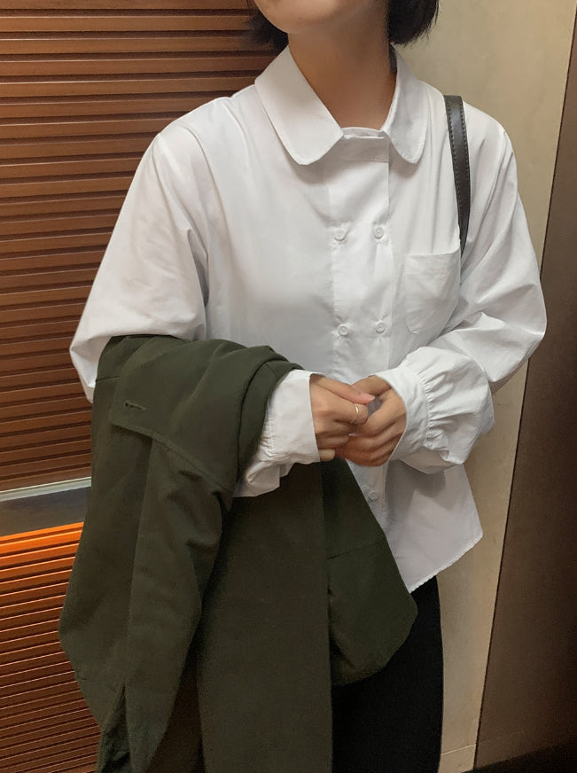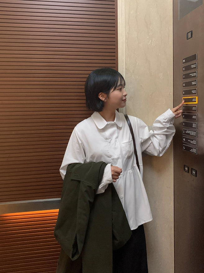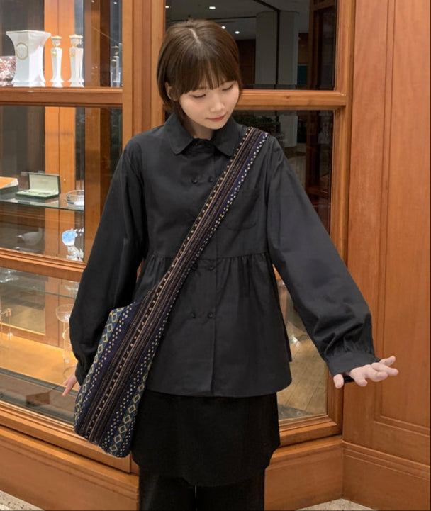 [BAONHAUS]ビルダー襟付きボタンシャーリング長袖ブラウス
