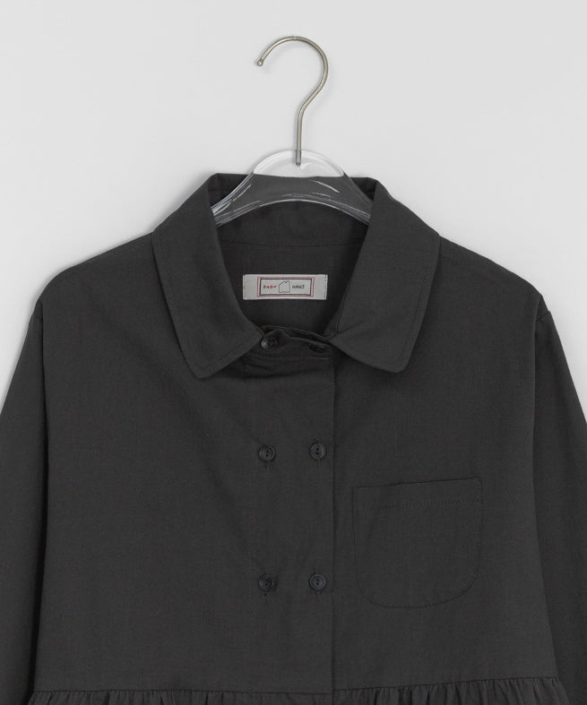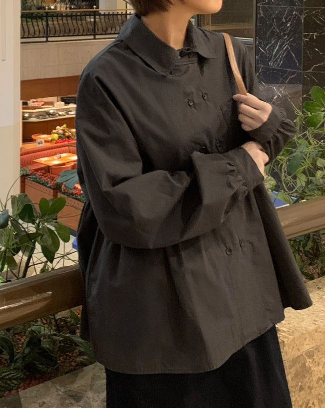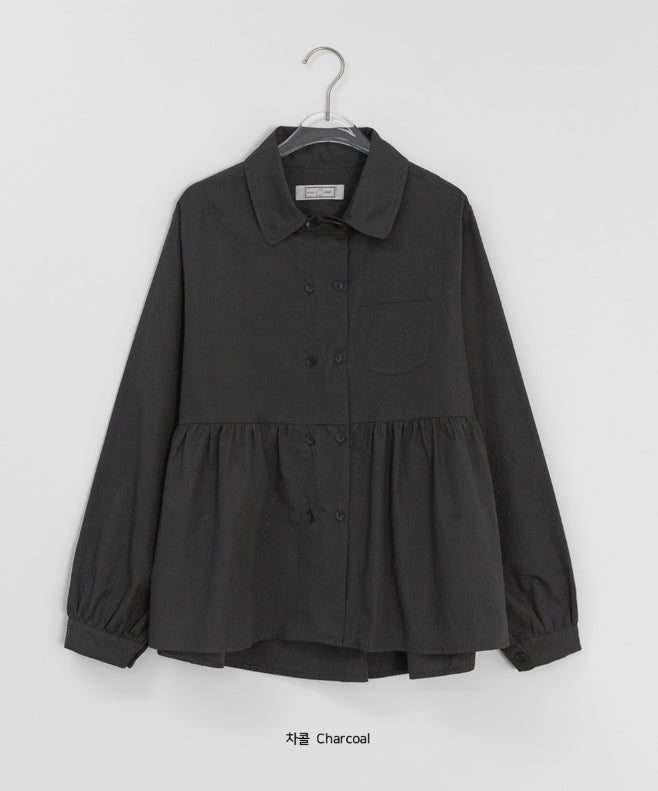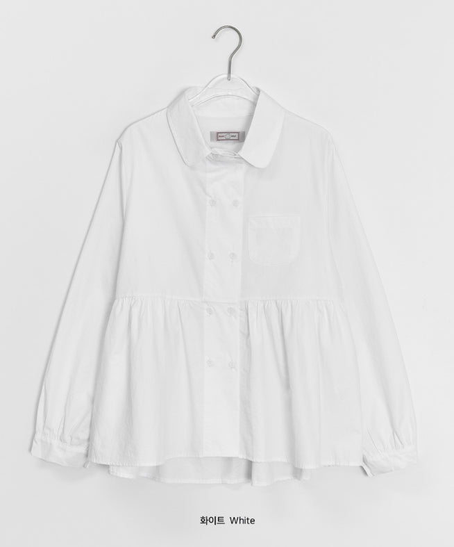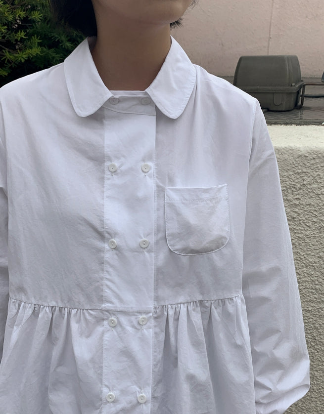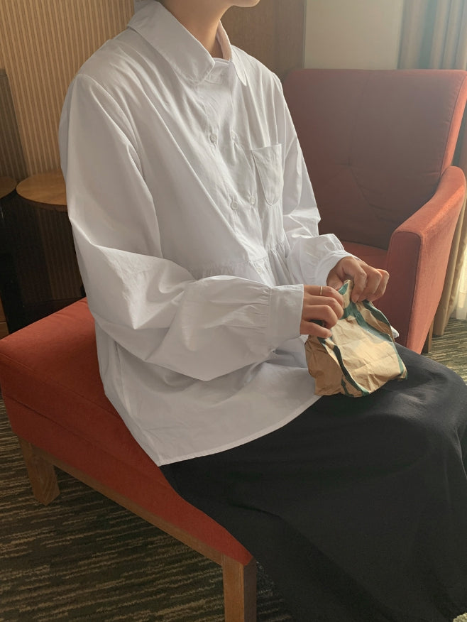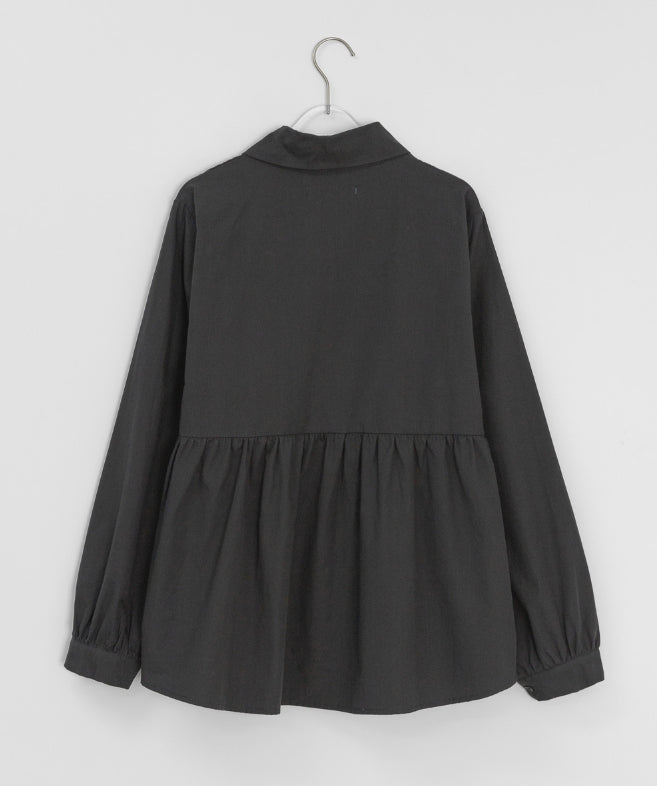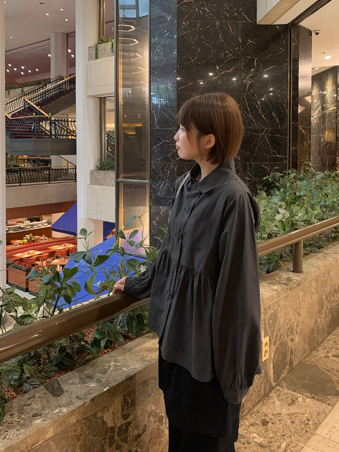 [BAONHAUS] Builder Collar Button Shirring Long Sleeve Blouse