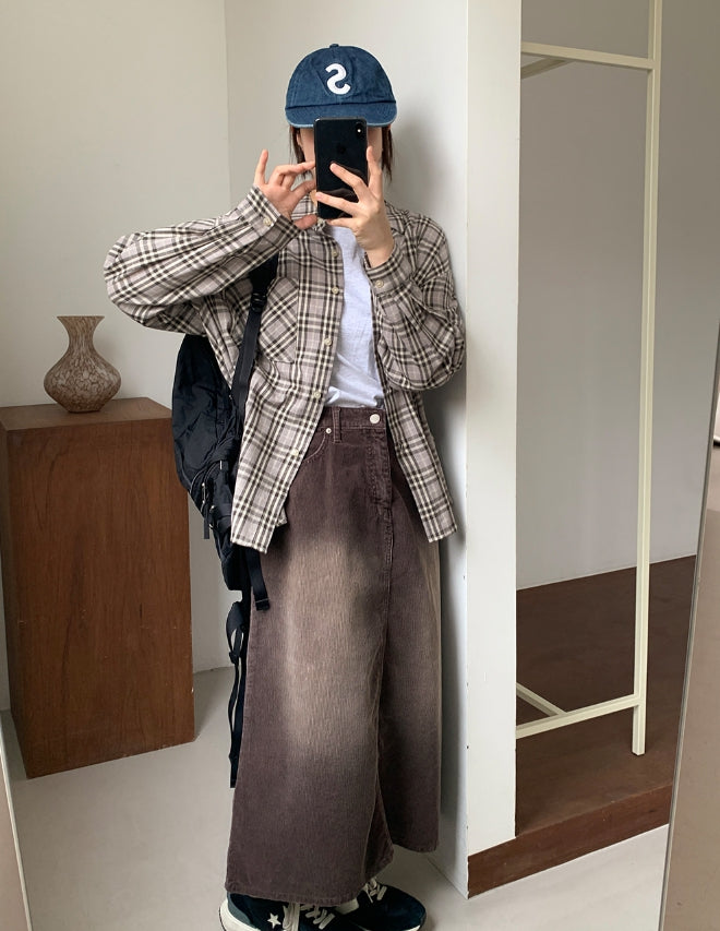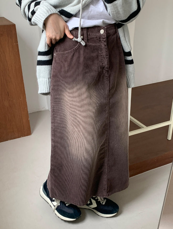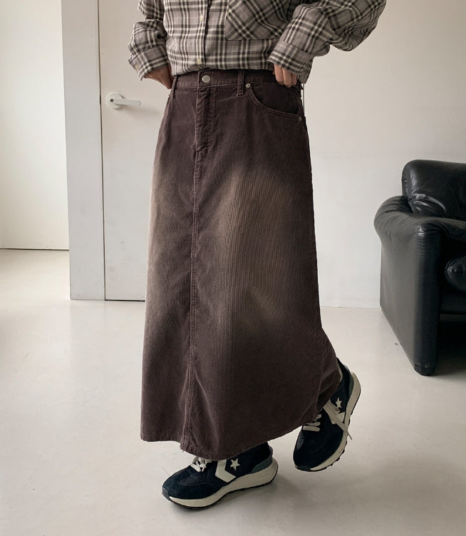 [BAONHAUS] Camon Bijo Washing Corduroy Long Skirt