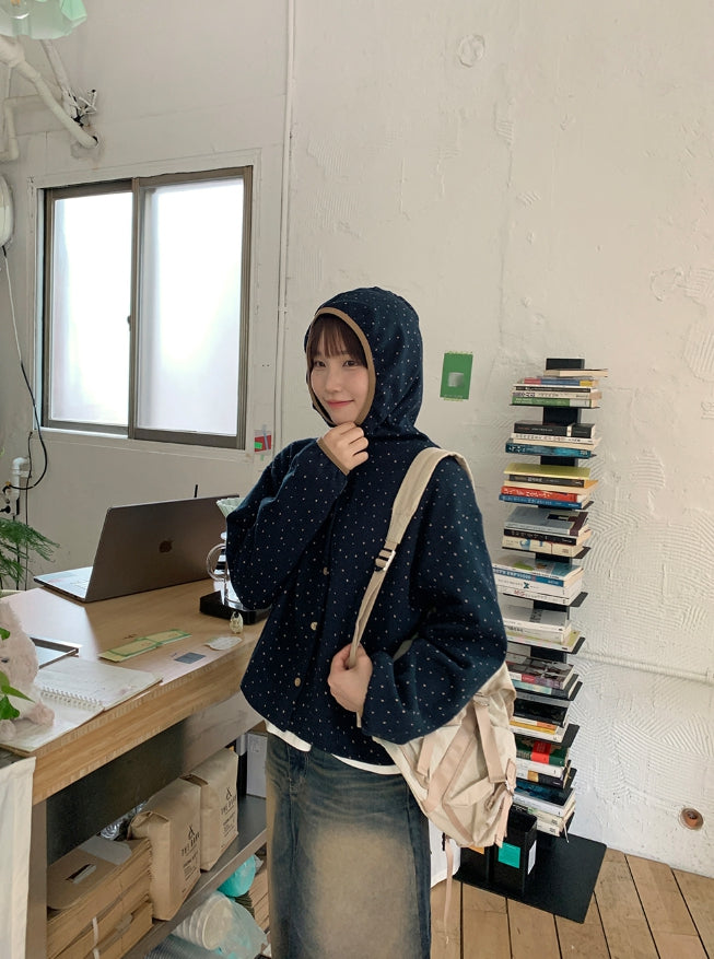 [BAONHAUS] Carodie Dot Hood Cardigan