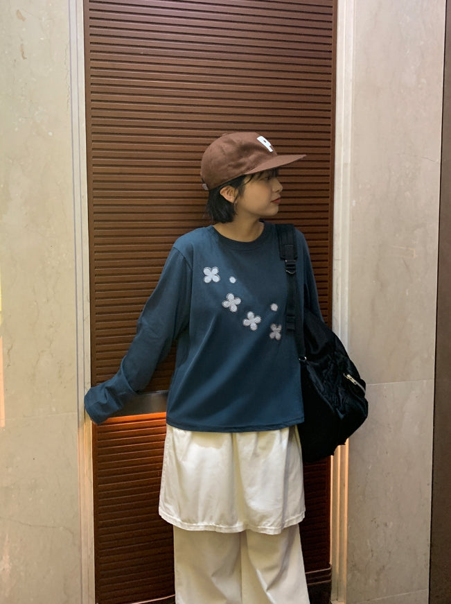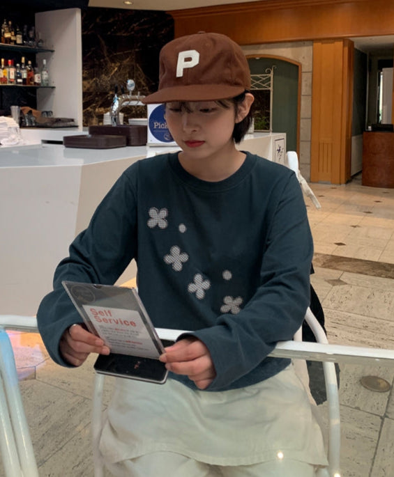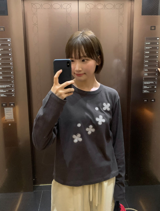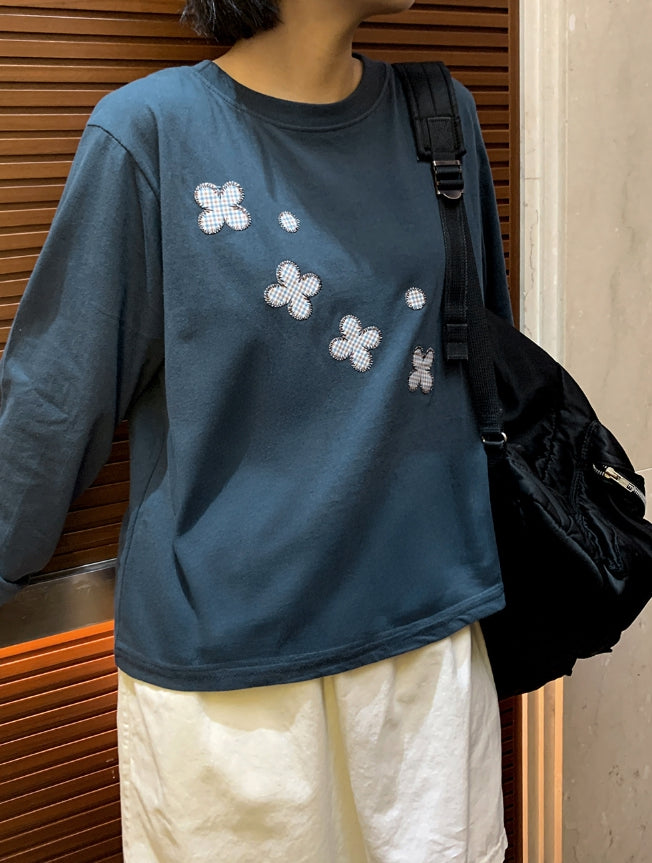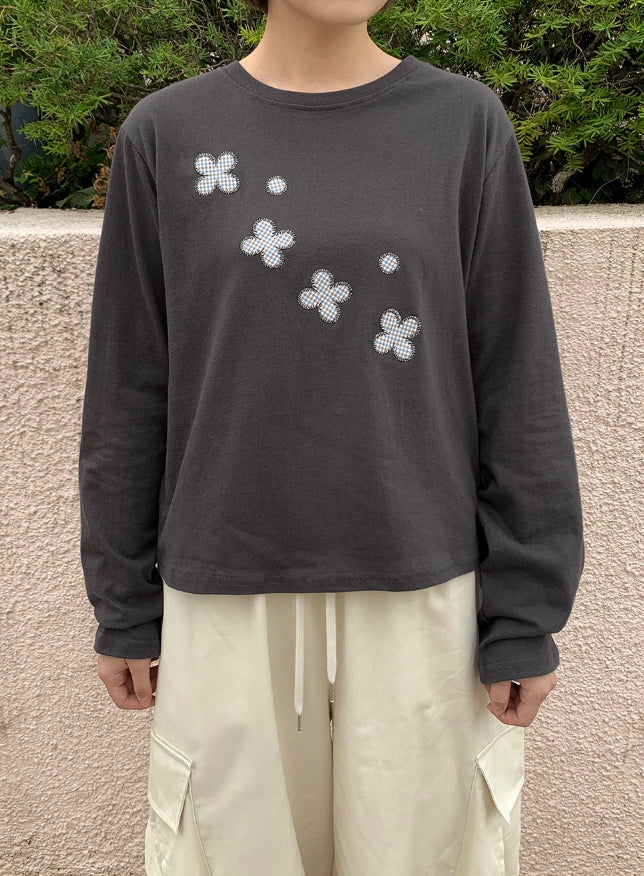[BAONHAUS] Comcard Flower Patch Round Long Sleeve Tee