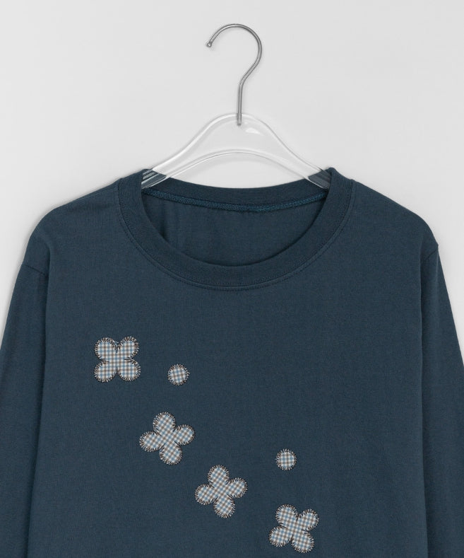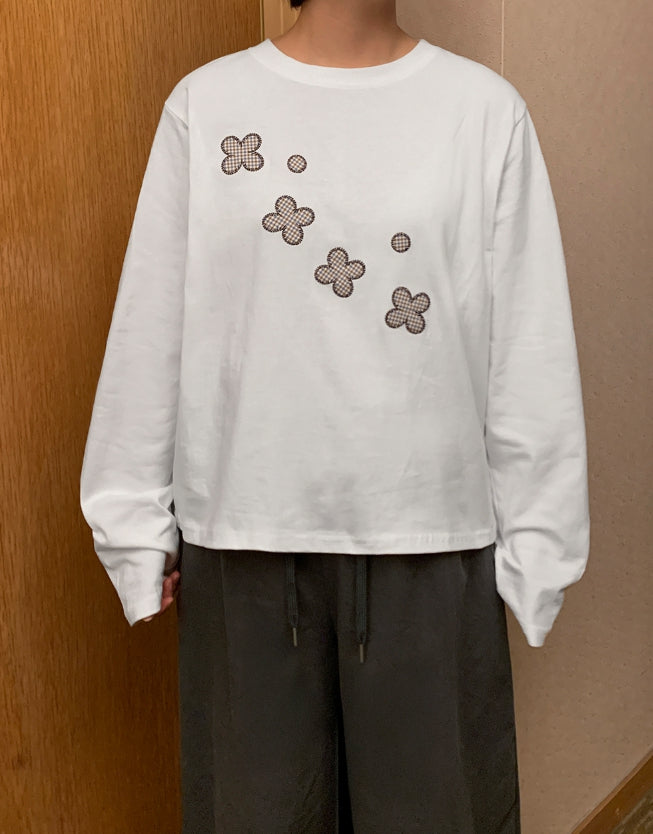 [BAONHAUS]コムカードフラワーパッチラウンド長袖Tシャツ