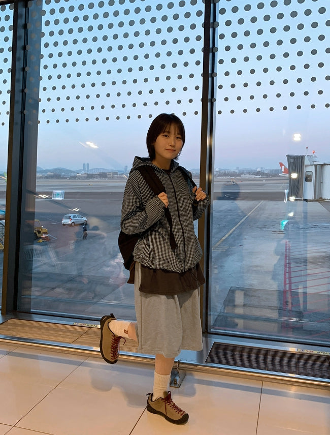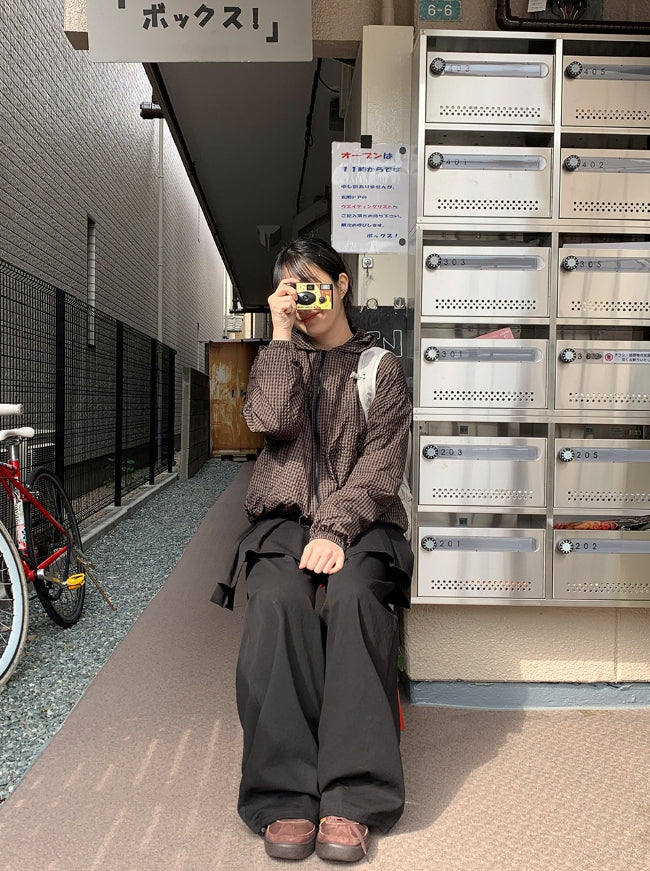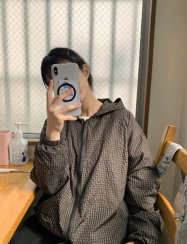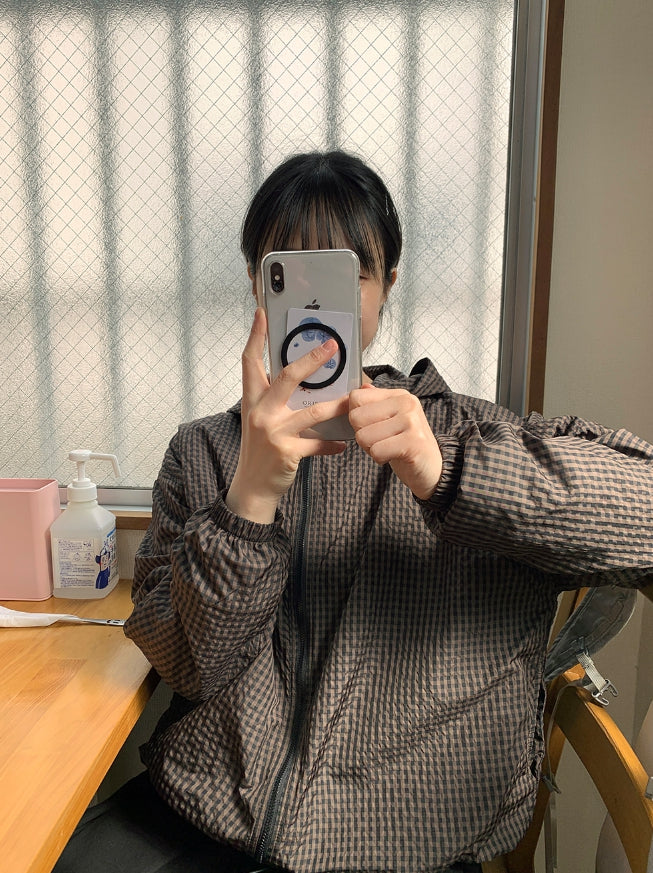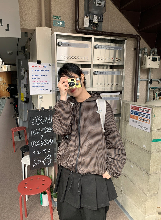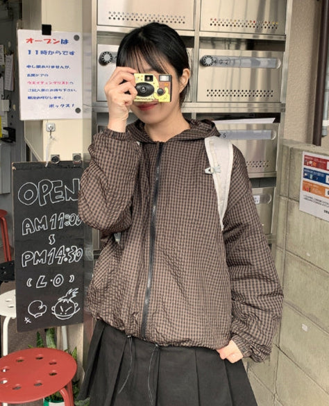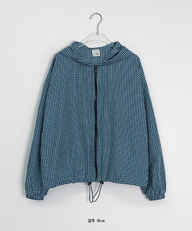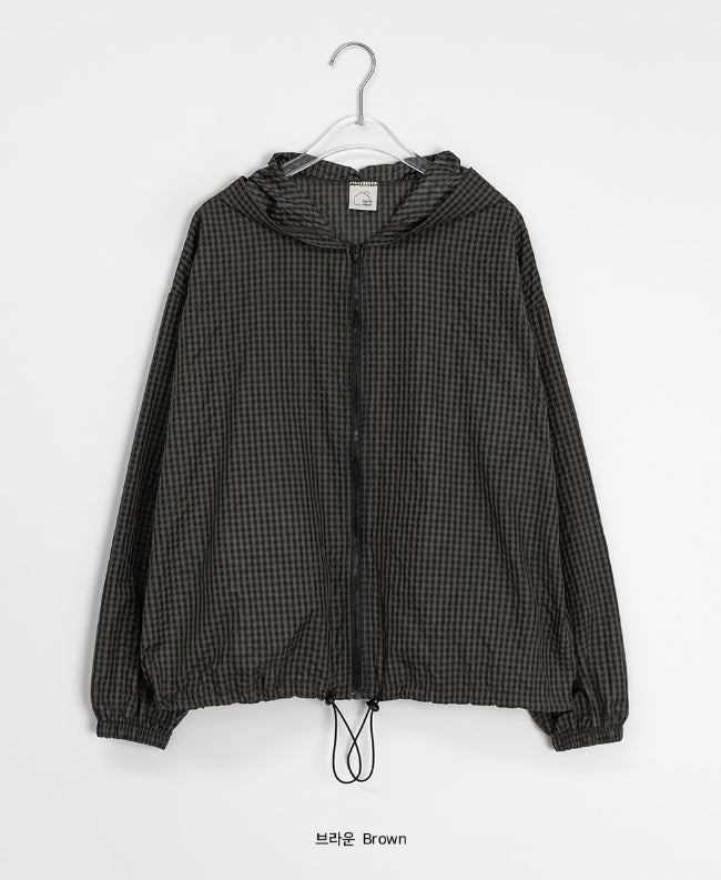 [BAONHAUS] Corony Gingham Check Hood Wind Jumper