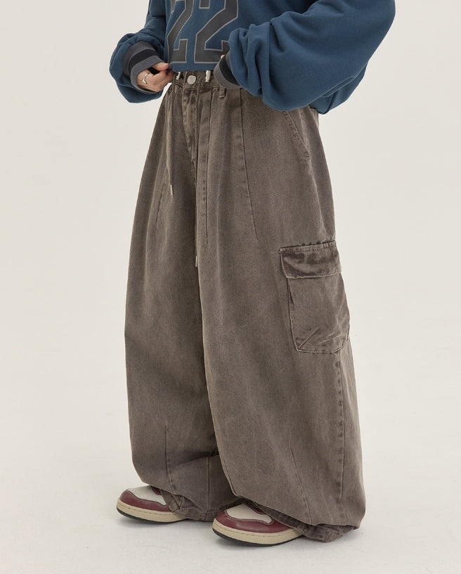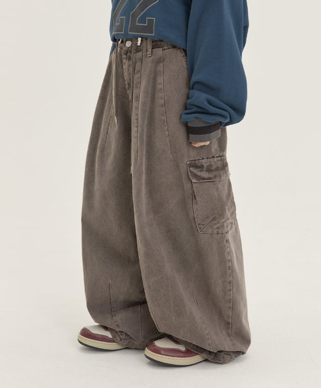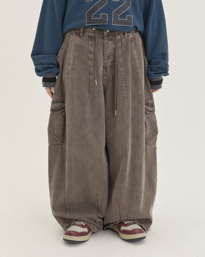 [BAONHAUS] Denrod Pintuck Pigment Cargo Balloon Pants