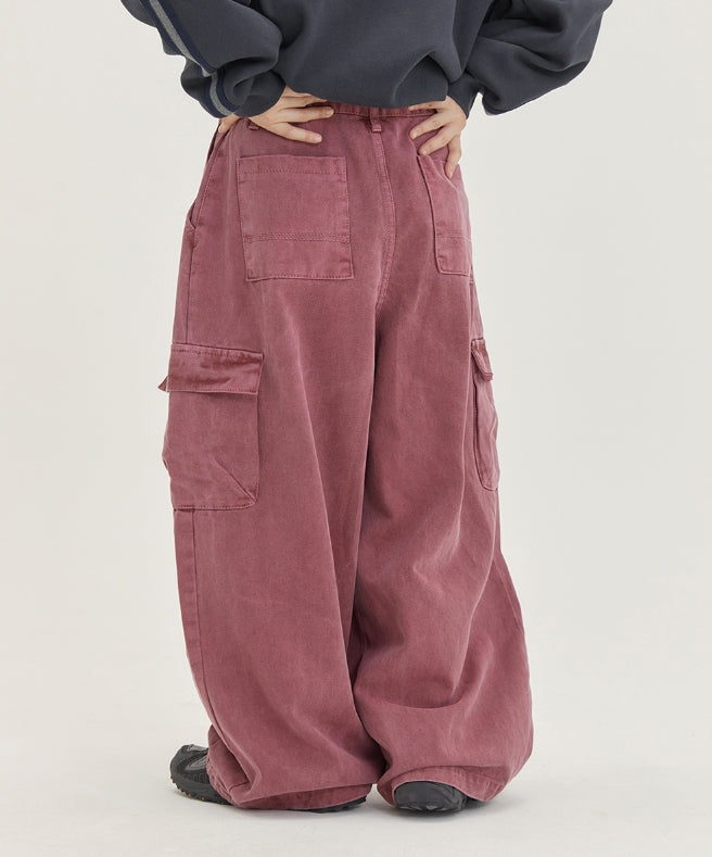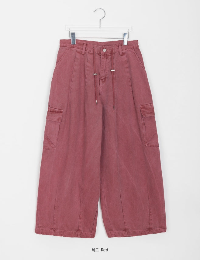 [BAONHAUS]デンロッドピンタックピグメントカーゴバルーンパンツ