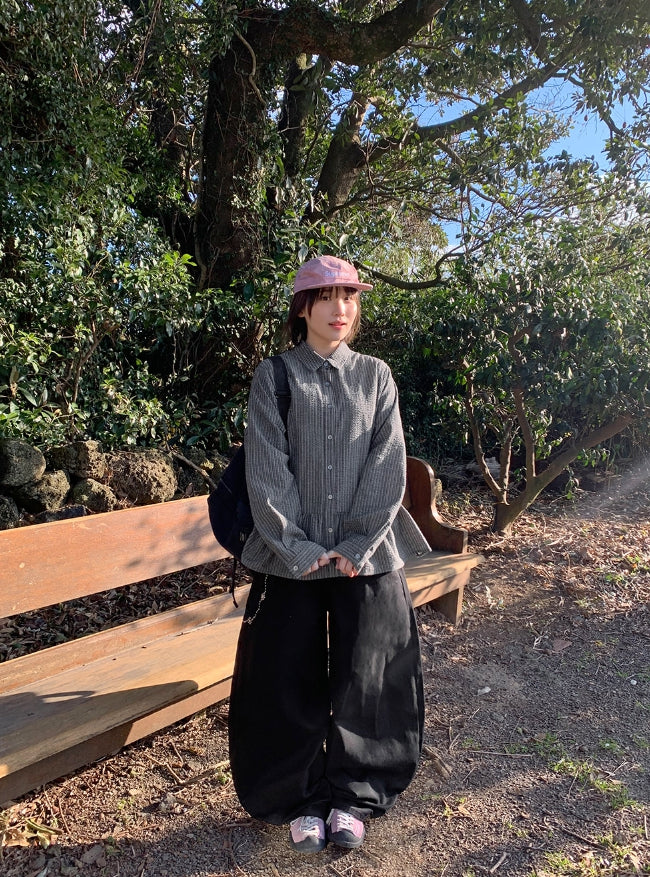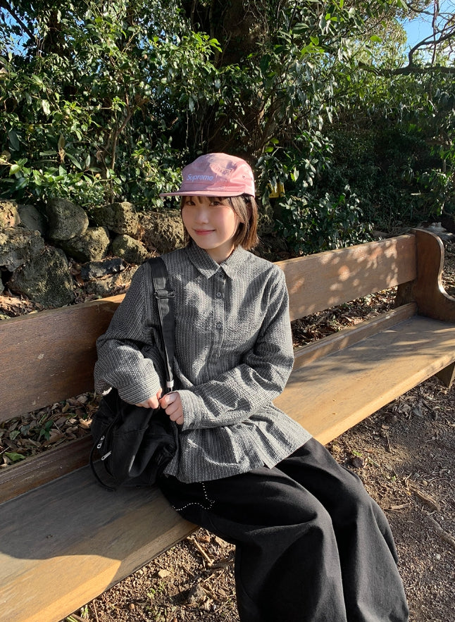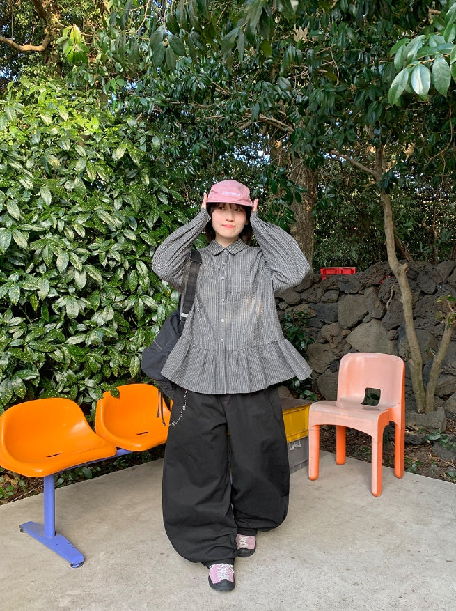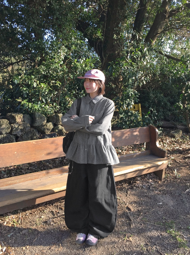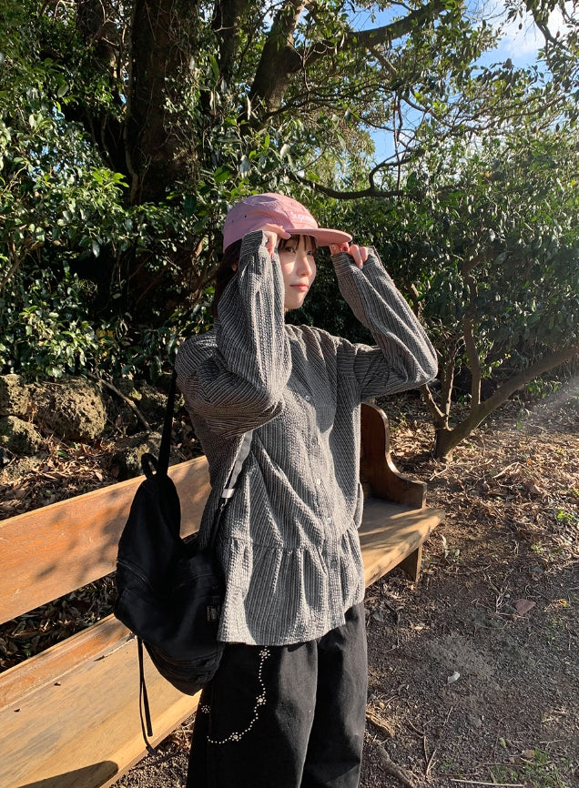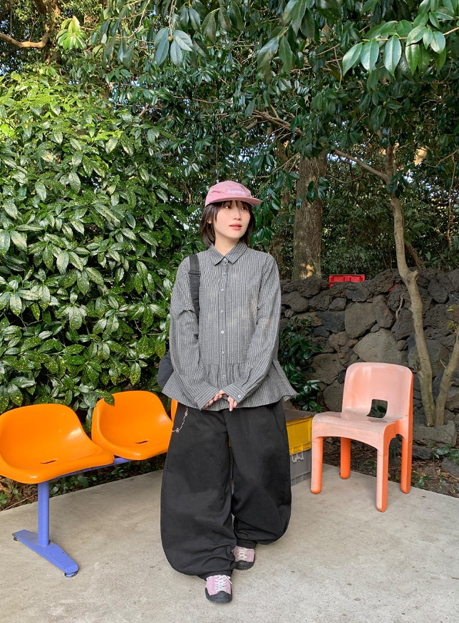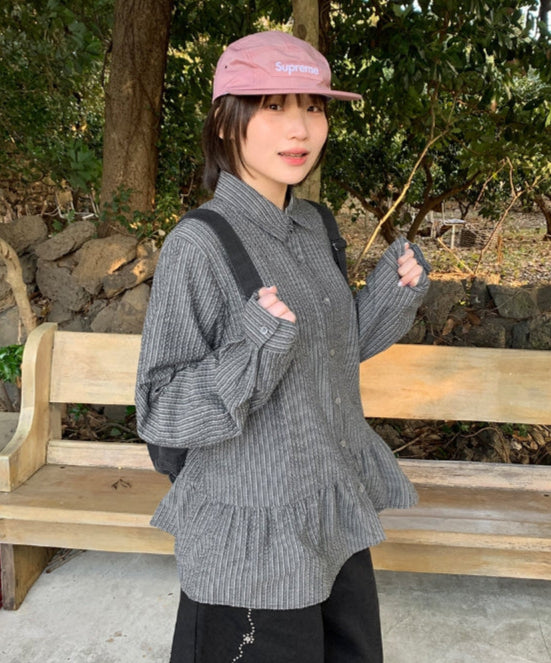 [BAONHAUS] Eika Stripe Frill Over Shirt