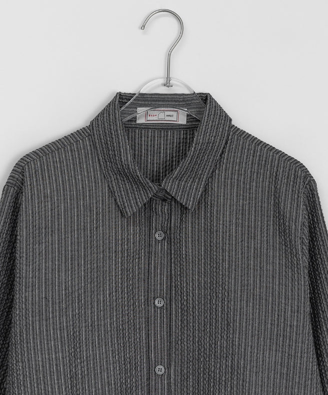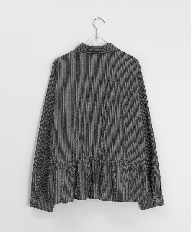 [BAONHAUS]アイカストライプフリルオーバーシャツ