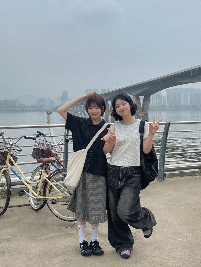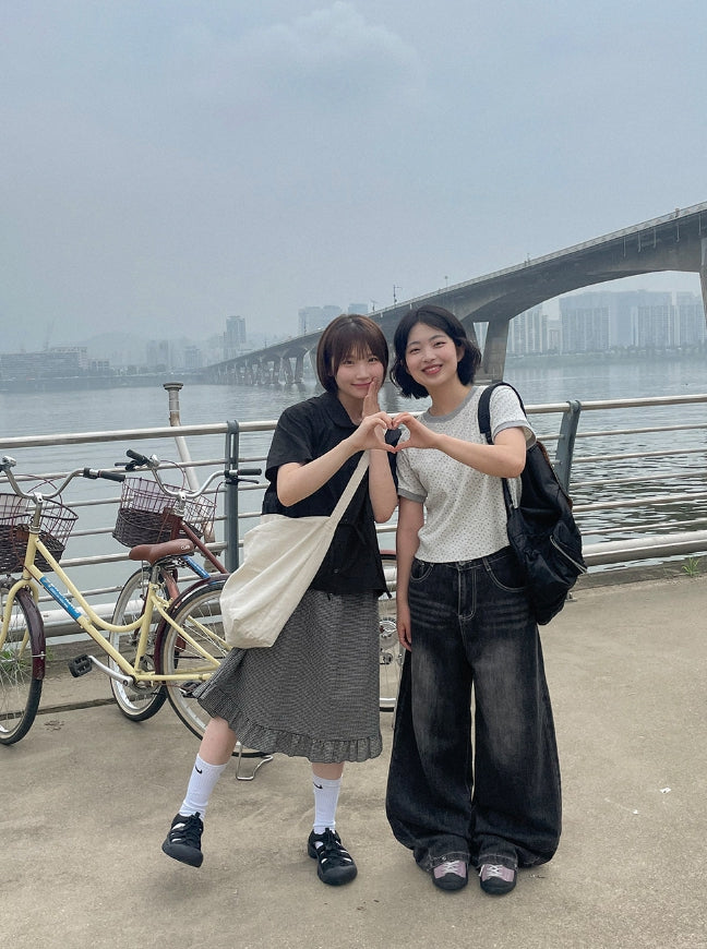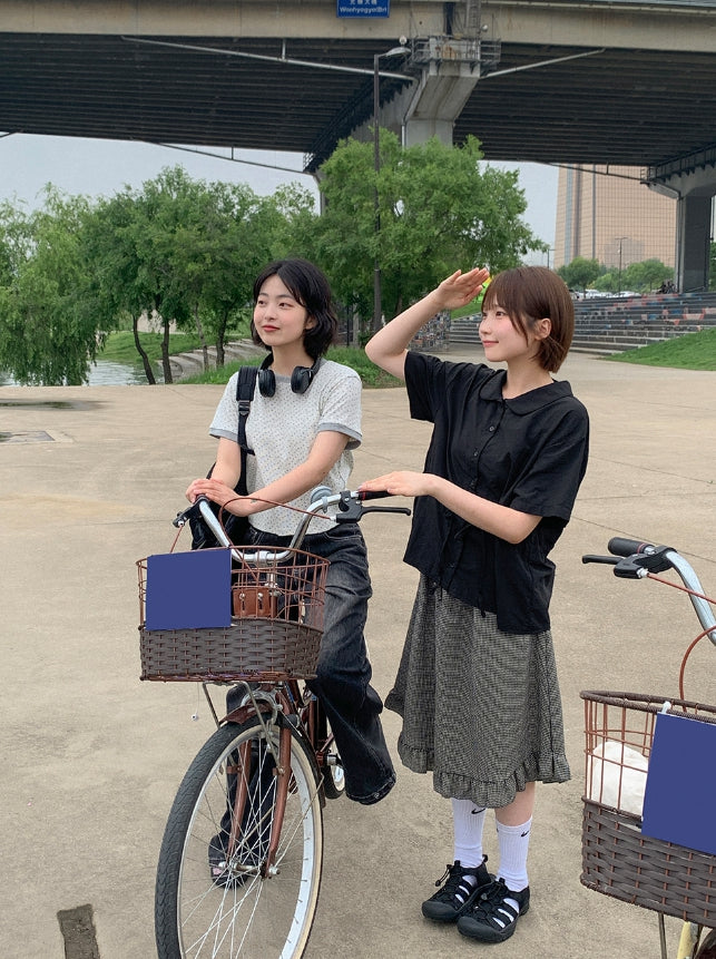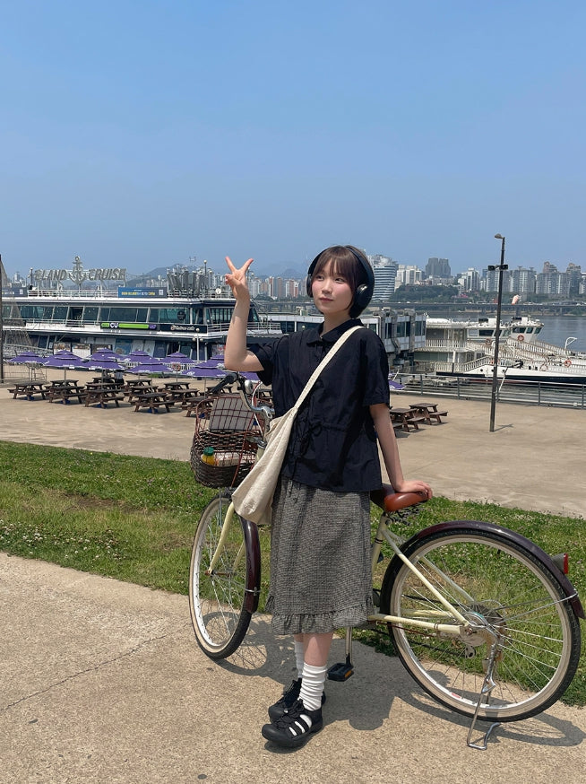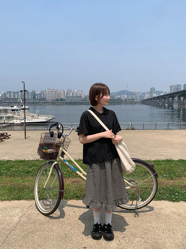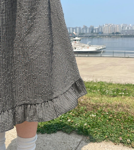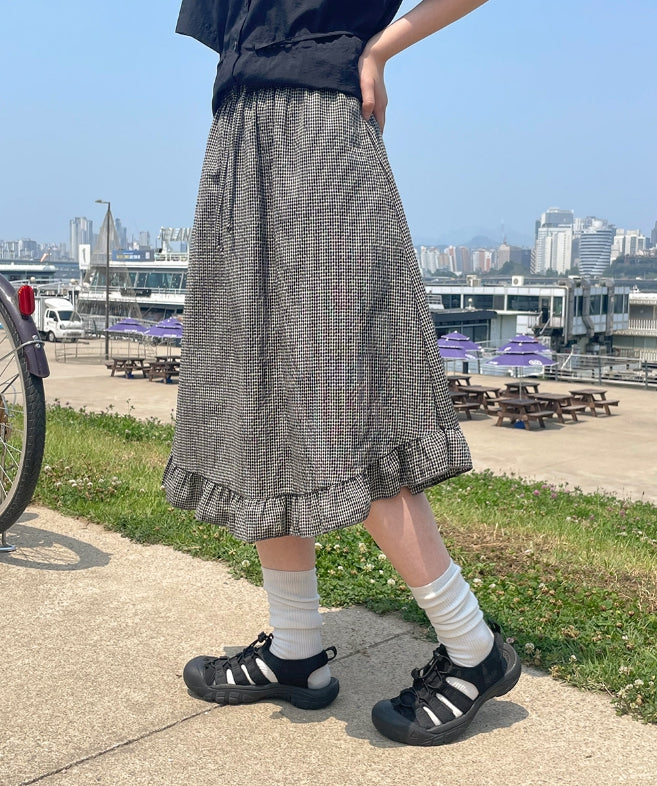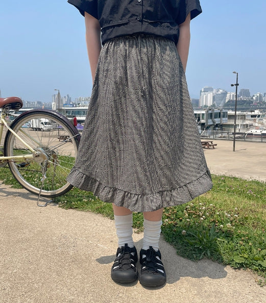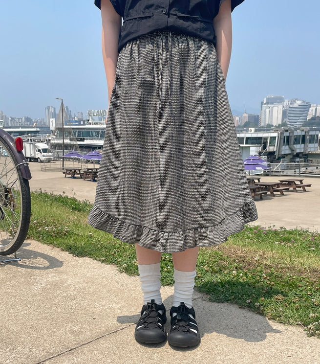 [BAONHAUS] Entol Summer Check Unbalanced Frill Midi Skirt