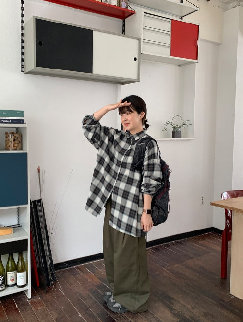 [BAONHAUS]アンディビオーバーチェックシャツ