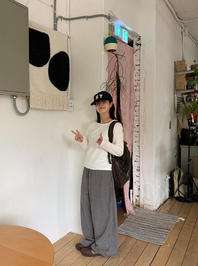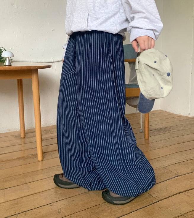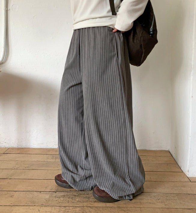 [BAONHAUS] Fenmi Stripe Banding Wide Pants