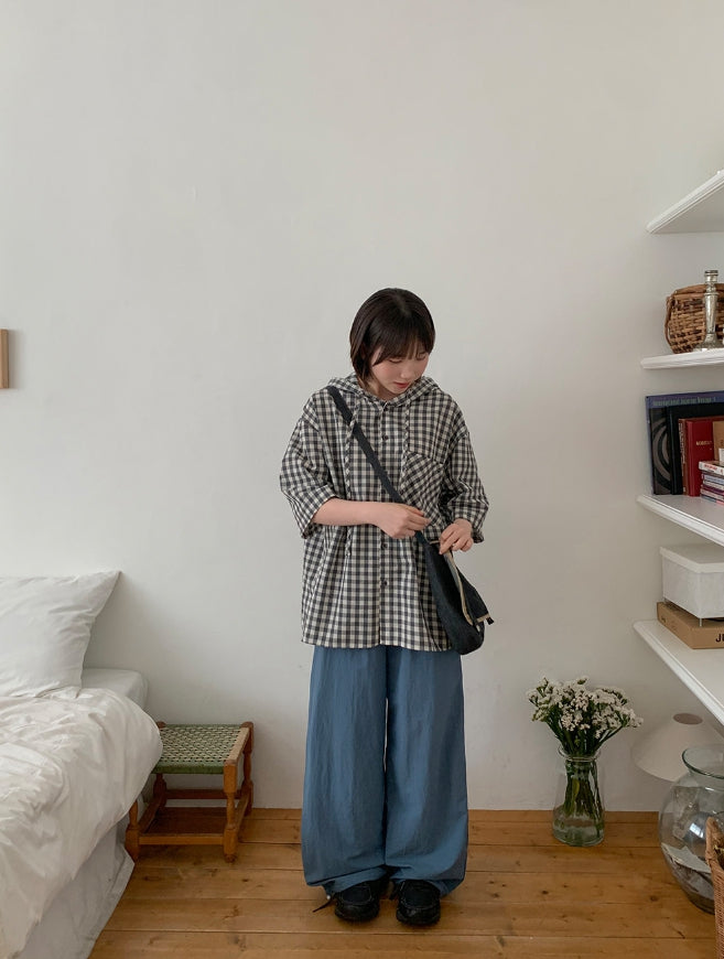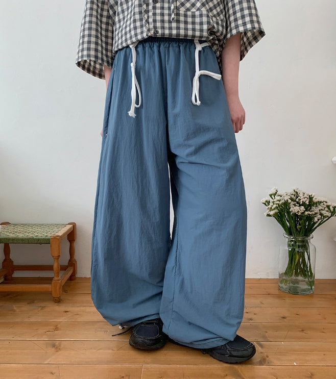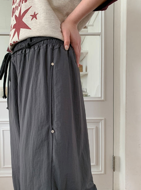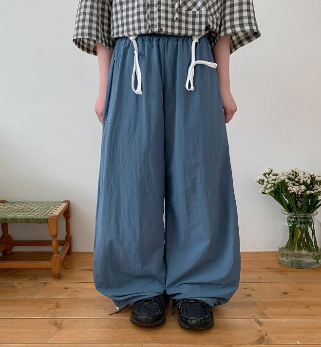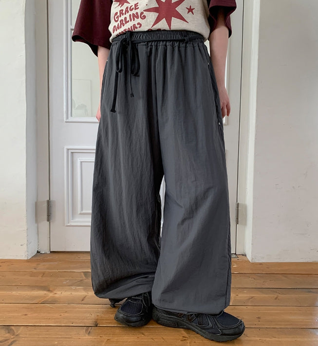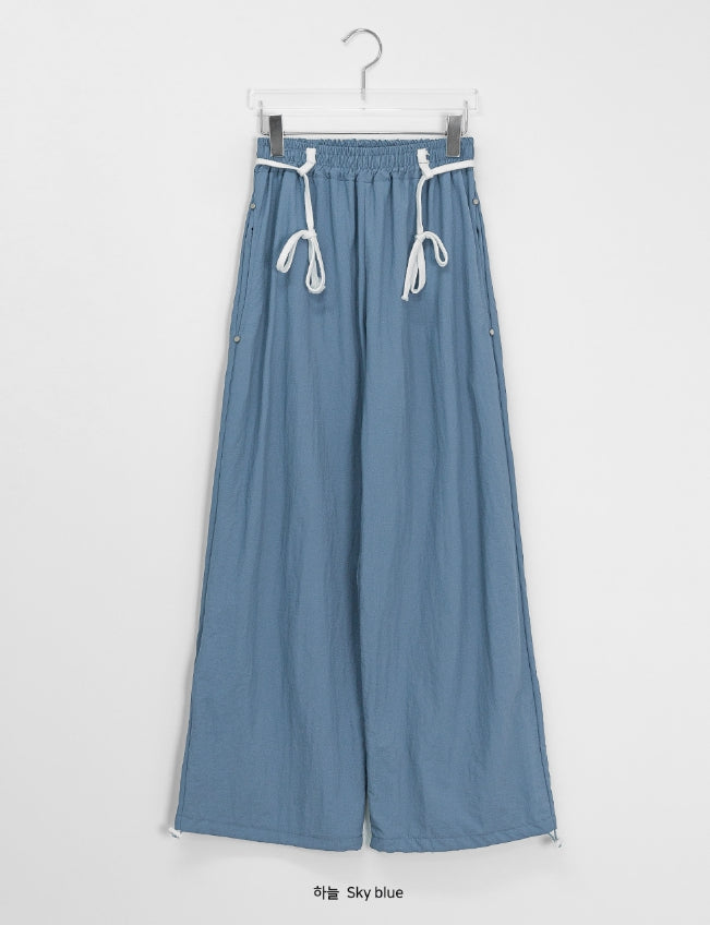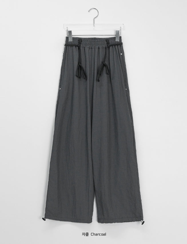 [BAONHAUS] Genbibeu Nylon Belted Wide-leg Pants