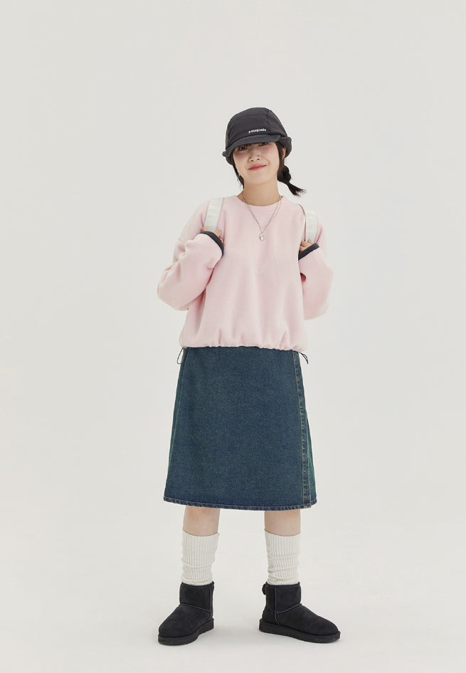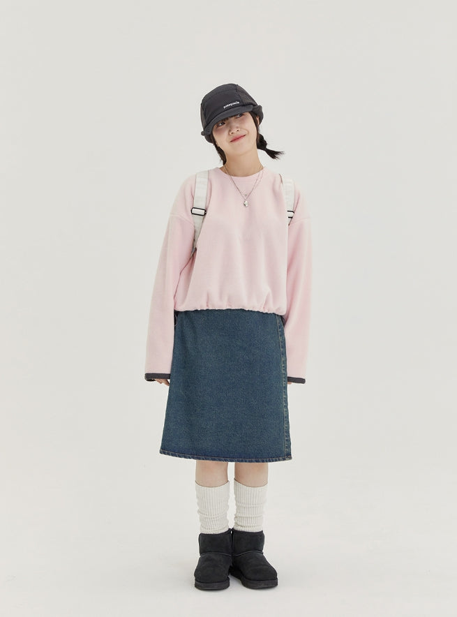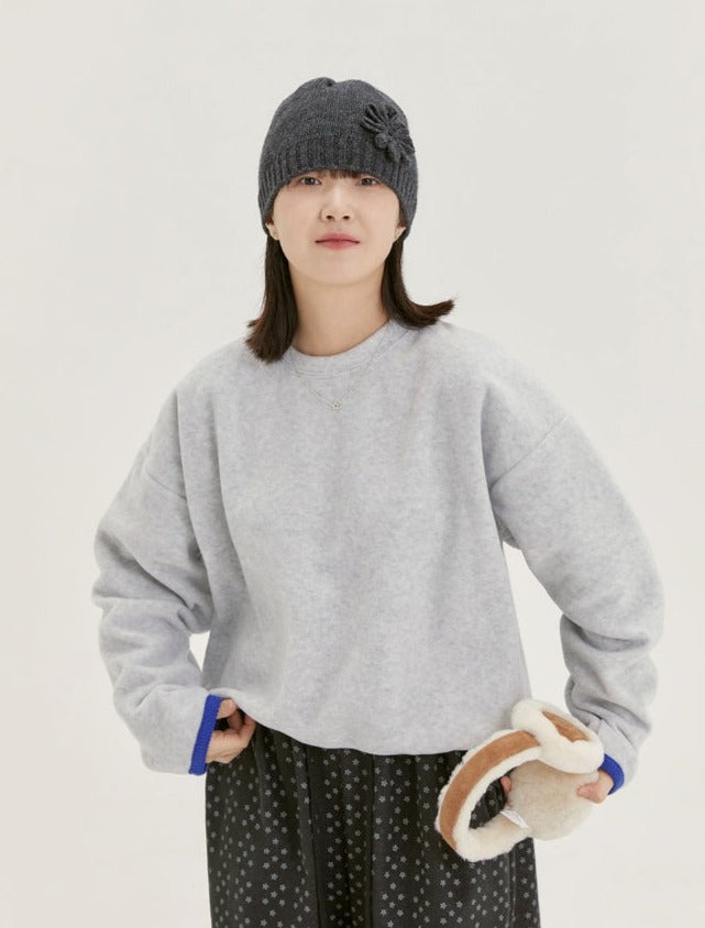 [BAONHAUS] Gengo color matching fleece crop sweatshirt